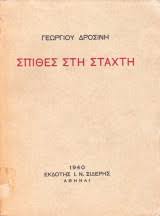 Τακτικός στο ραντεβού του με το έργο του Γεωργίου Δροσίνη ο Αναστάσιος Αγγ. Στέφος, ανέλαβε αυτή τη φορά να μελετήσει την ποιητική συλλογή του ποιητή «Σπίθες στη στάχτη». Η συλλογή εκδόθηκε το 1940 μαζί με τη συλλογή «Είπε». Περιλαμβάνει 427 άτιτλα λυρικά τετράστιχα με ποικίλη θεματική –αγάπη, έρωτας, δύναμη όρκου, ψεύδος, χωρισμός, μουσική και τέχνη, οράματα, φιλοσοφικές σκέψεις, ελληνική φύση, αρχαιότητα , θεοί, θεές, μυθολογία, ιστορία ελληνική και ευρωπαϊκή- πράγμα που αποδεικνύει περίτρανα τη μεγάλη παιδεία του ποιητή.