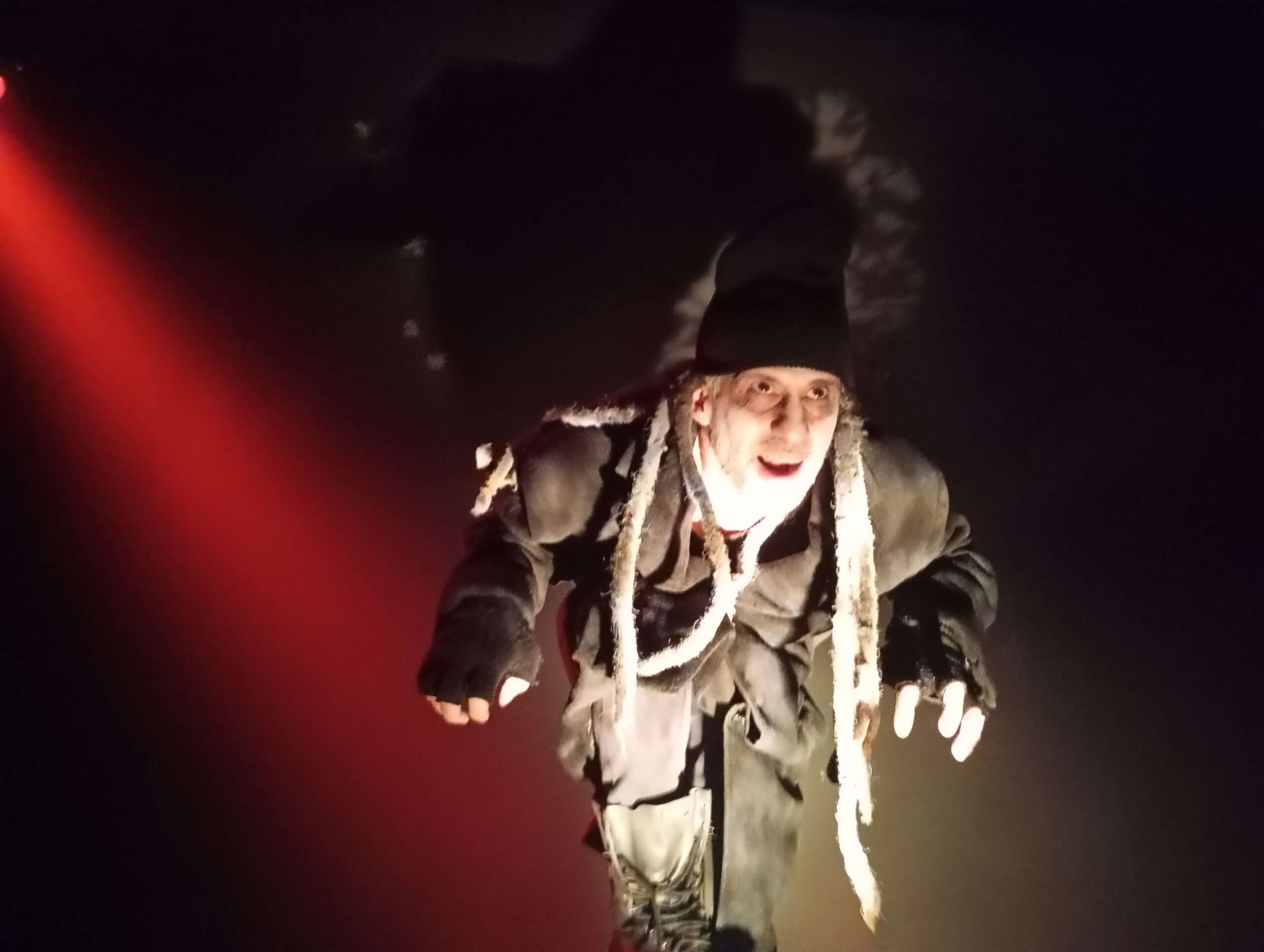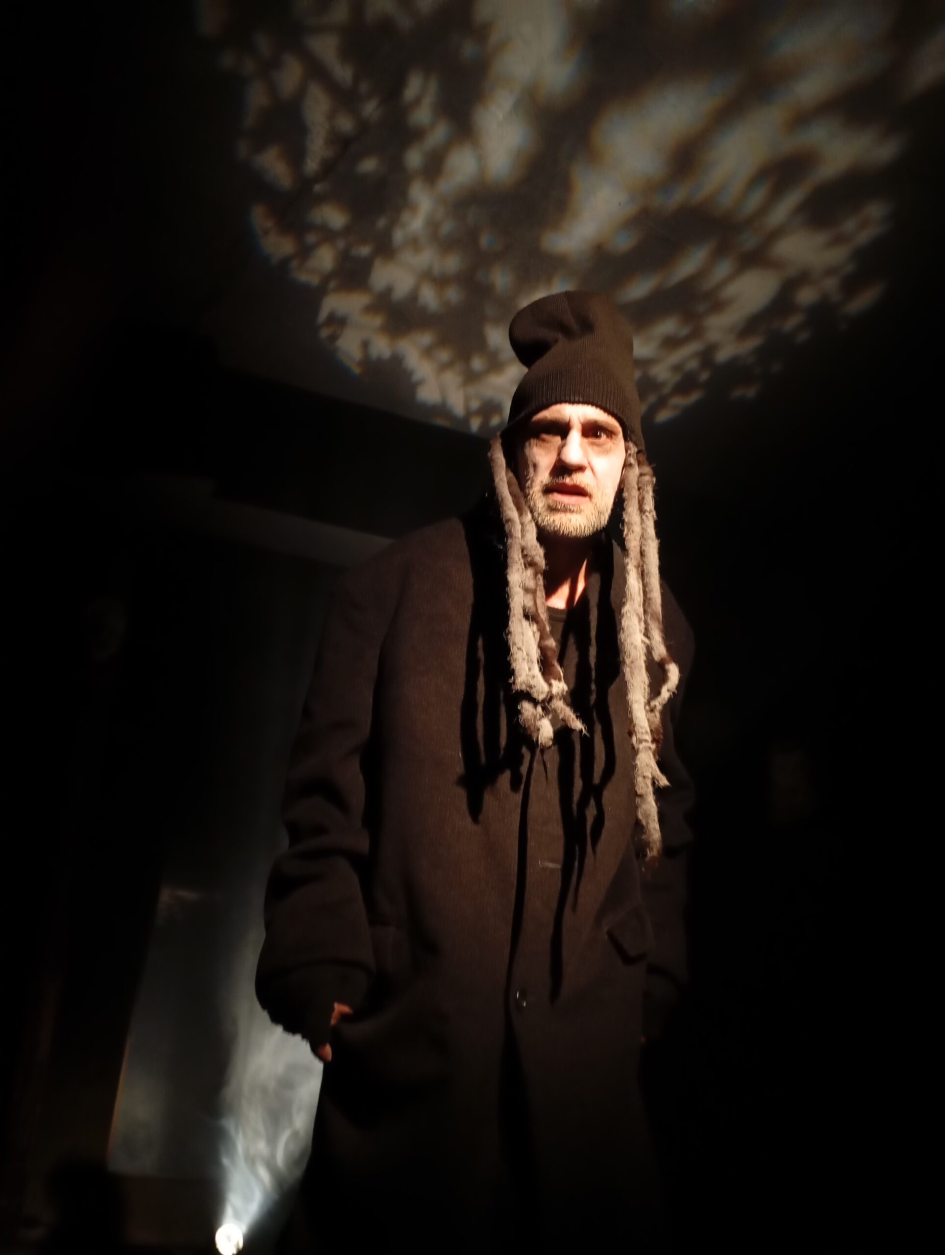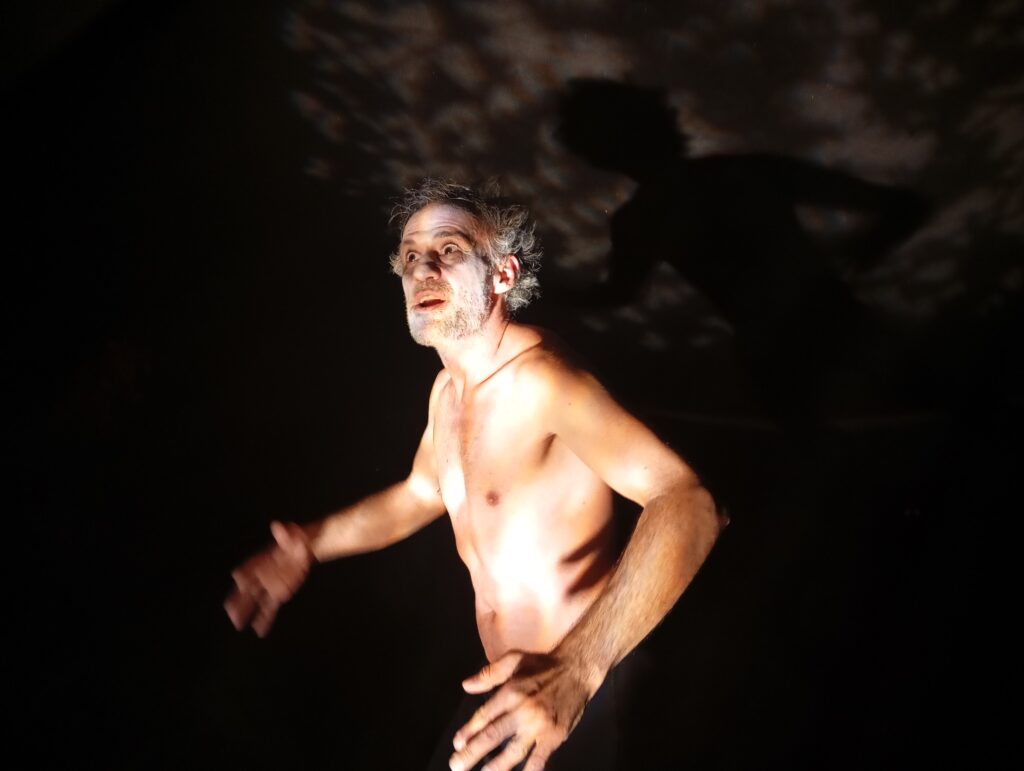 Ξαναβγαίνοντας στο φως του επιμελημένου χώρου υποδοχής, ο ηθοποιός, ερμηνευτής και μύστης Αντρέας Θεοχάρης μας έδειξε έναν άνθρωπο κανονικό που για τις ανάγκες του ρόλου του είχε μεταμφιεστεί σε προϊστορικό τέρας, με μια σπηλαιώδη φωνή, με θηριώδη ανθρωποφαγία, μια άλογη δύναμη του μυθικού καιρού των τεράτων. Ο σκηνοθέτης Βαγγέλης Φελουζής καθώς και μερικοί φίλοι θεατές, ανάμεσα τους ο φιλόσοφος και παραγωγός Γιάννης Κώστας, η σύζυγός του Μάρθα Ζιώγα -η μικρή κόρη του Βασίλη Ζιώγα, τραγουδίστρια αναγεννησιακών τραγουδιών, λίντερ και Πιατσόλα-, η τελευταία σύζυγος του Ζιώγα, ποιήτρια, μεταφράστρια, Διευθύντρια του ηλεκτρονικού Περιοδικού Περί ου Παυλίνα Παμπούδη κι εγώ είχαμε την ευτυχία να συνομιλήσουμε και να απολαύσουμε μία συζήτηση υψηλών απαιτήσεων και να θαυμάσουμε τον δημιουργό αλλά και τον άνθρωπο, τον σκηνοθέτη και τον ηθοποιό τον ταγμένο με θρησκευτική προσήλωση στον στόχο, ευγενικό, σεμνό και αφοσιωμένο Αντρέα Θεοχάρη.