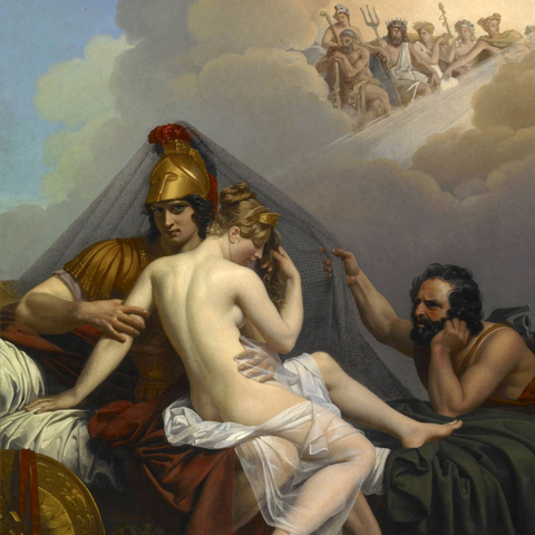 Μπορεί ο πόλεμος να φέρνει ΘΑΝΑΤΟ, μπορεί να είναι ο πατήρ πάντων, ωστόσο θα πρέπει για λίγο να πάψει να χτυπά με το σπαθί, για να πάρει τα ηνία ο έρωτας που φέρνει ΖΩΗ. Κι ο έρωτας για να συγκινεί πρέπει να απεικονίζεται με ωραία σώματα. Αυτός είναι ο λόγος που μια θεά της ομορφιάς και του έρωτα παίζει το ρόλο της, γεννά μια εκστρατεία στην μακρινή Τροία, καταστρέφει μια αυτοκρατορία και, γενικώς φέρνει ανακατάταξη στον πολιτικό και ερωτικό χάρτη. Η Ελένη συχνά ταυτίζεται με την Αφροδίτη και ο Πάρις είναι ωραίος και πολεμιστής σαν Άρης.