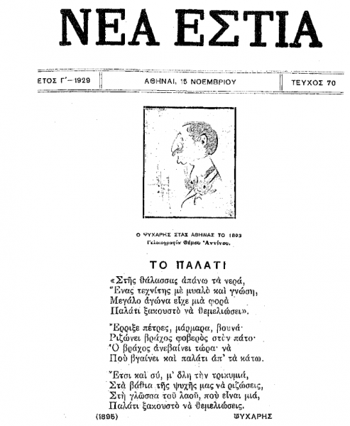 [11] Γ. Σιδέρης, “Ψυχάρης και θέατρο”, Nέα Eστία 55 (1954), σσ. 724-736.