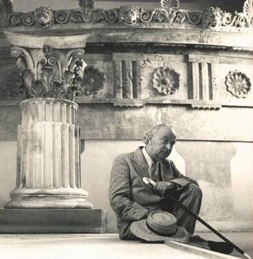 μας θυμίζουν τη φωτογραφία του Σεφέρη στην Παλμύρα και την άλλη της «Ιεράς Οδού». Μήπως όσα σκεφτόταν τότε καθισμένος στην πέτρα είναι αυτά που ολοκληρώνονται σ’ αυτό το ποίημα;; Αυτός τώρα που μιλάει πρέπει να υποθέσουμε ότι είναι ο Σικελιανός, αφού το μάρμαρο «έμοιαζε απομεινάρι αρχαίου πυλώνα». Οι στίχοι: