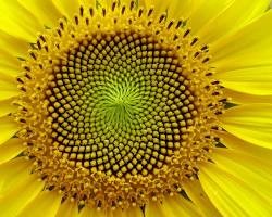 Ηλιοτρόπια: Η διάταξη των σπόρων σε ένα ηλιοτρόπιο ακολουθεί την ακολουθία Φιμπονάτσι.