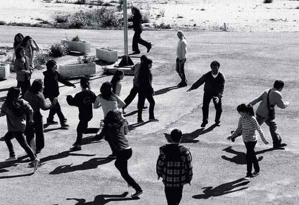Δύο καθηγητές επέβλεπαν την κατάσταση από απόσταση. Ο ένας, ο καθηγητής του Δικαίου, ένας σχολαστικός άνδρας με γυαλιά που κατέγραφε τα πάντα σε ένα παλιό τετράδιο, προσπαθούσε να μαζέψει μαρτυρίες. Εξέδιδε αυστηρές ανακοινώσεις που μιλούσαν για παραβίαση των «κανόνων της αυλής», αλλά οι ισχυροί μαθητές τις αγνοούσαν, σαν να ήταν απλώς ενοχλητικές μύγες. Ο άλλος, ο καθηγητής των Οικονομικών, ένας άνδρας λιπόσαρκος και αυστηρός, παρακολουθούσε με ένα κομπιουτεράκι στο χέρι, έτοιμος να επιβάλει «περικοπές στο χαρτζιλίκι» σε όποιον μαθητή έδειχνα σημάδια οικονομικής κατάρρευσης από την αναταραχή.