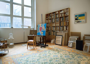 Francoise Gilot in her art studio circa 1982 in La Jolla, California.