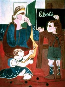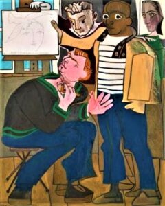 Ωστόσο δεν μπορούμε να μην αναγνωρίσουμε ότι, παρά την κατάρρευση της σχέσης της με τον μεγάλο ζωγράφο, θέλει να τιμήσει αυτή την περίοδο της ζωής της, δεν μπορούμε να μην την εκτιμήσουμε γι’ αυτό. Ολοκληρώνει το περίφημο έργο με τον τίτλο, Les peintres, (1953), όπου απεικονίζει τον Πικάσο μαζί με τους ζωγράφους Pignon και Gastaud. Πρόκειται για ένα έργο σύνθετο: τμήματα οριζόντια και κάθετα, συμπληρωτικές χρωματικές αντιθέσεις, ένα έργο με συναισθηματικά φορτισμένη απεικόνιση που εστιάζει στο σχέδιο του Πικάσο όπου η ίδια απεικονίζεται σαν το Περιστέρι της Ειρήνης.