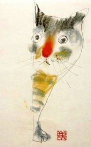 Γιατί όλες οι γάτες, μία προς μία, από την πιο μοχθηρή και ύπουλη κεραμιδόγατα ως την πιο καμαρωτή, πάλλευκη που αγλάισε με την χάρη της τη μαξιλάρα του ποντίφικα – όλες μας έχουμε τα δικά μας χαμόγελα, κι είναι σαν ζωγραφισμένα. Εκείνα τα μικρά, απόμακρα χαμόγελα της Μόνα Λίζα με τα οποία οφείλουμε να χαμογελάμε, είτε γουστάρουμε είτε όχι. Έτσι λοιπόν όλες οι γάτες έχουμε έναν αέρα πολιτικού˙ χαμογελάμε διαρκώς οπότε οι υπόλοιποι μας έχουν για κακούργες (…)