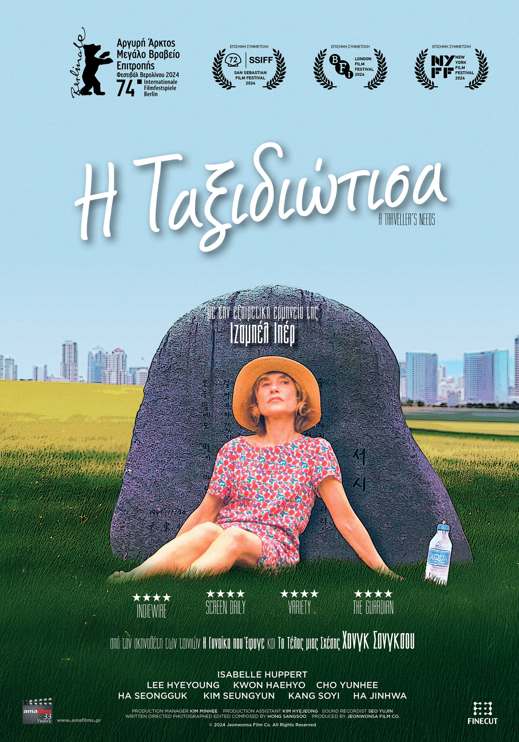 Ο Νοτιοκορεάτης δημιουργός Χονγκ Σανγκ σου (“Η Γυναίκα που Έφυγε”), γνωστός για τις απατηλά απλές αφηγήσεις του και το αυτοσχεδιαστικό του στυλ, επιστρέφει με το «Η Ταξιδιώτισσα», μια ταινία που ενσωματώνει την χαρακτηριστική διαλογιστική του προσέγγιση στην αφήγηση. Η ταινία ακολουθεί την Ίριδα, μια Γαλλίδα που υποδύεται η Ιζαμπέλ Ιπέρ, η οποία βρίσκεται στη Νότια Κορέα μετά από εργασιακές ανωμαλίες και οικονομικές δυσκολίες. Καθώς περιπλανιέται μέσα στις μέρες της, ανακαλύπτει παρηγοριά στα δημόσια πάρκα της χώρας και την απαλή μέθη του makgeolli, ενός παραδοσιακού κορεάτικου κρασιού από ρύζι. Έχοντας ανάγκη από ένα εισόδημα, η Ίρις αρχίζει να διδάσκει γαλλικά σε δύο ντόπιες γυναίκες, κάνοντας το με έναν εντελώς ανορθόδοξο τρόπο που αντανακλά τόσο τη δική της προσωπική φιλοσοφία όσο και την ευρύτερη θεματική διερεύνηση της ταινίας για την πολιτιστική ανταλλαγή και την ανθρώπινη σύνδεση.