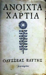 Το 1974 ο Ελύτης δημοσίευσε τα Ανοιχτά χαρτιά, έναν τόμο όπου συγκεντρώνει τα παλαιότερα κείμενά του και όπου δίνει μια ιδιαίτερη θέση σε κείμενα που αφορούν την ποίησή του. Ο τίτλος δηλώνει την πρόθεση του συγγραφέα να ανοίξει,  να ξεσκεπάσει, δηλαδή, τα χαρτιά του και να δείξει ανεπιφύλαχτα τι υπάρχει πίσω απ’ την ποίησή του. Μόνο που στο μεταξύ ο Ελύτης  έχει εγκαταλείψει τους συμβατικούς εκφραστικούς τρόπους, στους οποίους έχουμε συνηθίσει να εκφράζουμε τους κριτικούς και μη στοχασμούς και  στους οποίους συνήθιζε να εκφράζεται και ο ίδιος στα πρώτα μαχητικά του κείμενα (γύρω στα 1945). Με λίγα λόγια έχει συγκροτήσει έναν πεζό λόγο που θέλει, θα ‘λεγε κανείς, «αποκρυπτογράφηση». Σε αυτό το βιβλίο, έχω τη γνώμη ότι ο Ελύτης προσπαθεί – με τον δικό του τρόπο βέβαια – να εφαρμόσει κάτι ανάλογο με αυτό που κάνει ο Σεφέρης  στα δικά του πεζά κείμενα, όπου, όταν στοχάζεται, δεν αποβάλλει την ιδιότητα του ποιητή. Θα έλεγα  ακόμη πως η εντιμότητά του τον υποχρεώνει να το πει ξεκάθαρα στην αρχή του βιβλίου του: «Θα ήθελα, παρουσιάζοντας τα κείμενα αυτά, να το εξομολογηθώ αμέσως: δ ε ν  ε ί μ α  ι  κ ρ ι τ ι κ ο ς  ο ύ τ ε   π ε ζ ο γ ρ ά φ ο ς» (Ανοιχτά χαρτιά, σ. 3).   Η υπογράμμιση είναι δική μου. Πάντως, μετά την απονομή του Νόμπελ, τα Ανοιχτά χαρτιά, απ’ όσο γνωρίζω τουλάχιστον, άρχισαν να διαβάζονται με το σωστό πνεύμα και με τρόπο που εξυπηρετεί την αποδοτικότερη ανάγνωση του ποιητή.