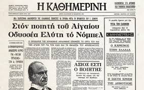 Αν υπάρχει μια στιγμή που θαύμασα και εκτίμησα τον ποιητή ως άνθρωπο, είναι αυτή που σε μια συνέντευξη που του πήραν είπε για τη βράβευσή του από τη Σουηδική Ακαδημία: «Τα βραβεία είναι δευτερεύοντα πράγματα. Αλλά έχουν σημασία. Αυτή τη φορά αισθάνομαι να είμαι ταυτισμένος με τη χώρα μου. Γι’ αυτό δεν μου επιτρέπεται να το αρνηθώ. Βέβαια, δεν πρόκειται να κάνω περιοδεία με διαλέξεις, όπως με ρώτησαν ορισμένοι, και ούτε σκέπτομαι να…. επεκτείνω το διαμέρισμά μου με τα χρήματα του βραβείου, όπως με ρώτησαν άλλοι. Δεν έχω ανάγκη από τα πράγματα. Θέλω να έχω τα απολύτως απαραίτητα». Λίγοι, ή πιο σωστά σπάνιοι είναι οι άνθρωποι που δεν χάνουν τη γη κάτω απ΄ τα πόδια τους όταν αγγίξουν τη δόξα. Για το ίδιο θέμα, ένας από τους πιο προικισμένους  φίλους του, ο μεγάλος ηθοποιός του θεάτρου και του κινηματογράφου Δημήτρης Χορν, που ήταν ένας από τους πιο τακτικούς συνομιλητές του ποιητή και με τον οποίο ο ποιητής πήγαινε συχνά διακοπές, λέει για τον φίλο του ποιητή : «Για μένα η ποίηση του Ελύτη ανοίγει την πόρτα των ονείρων. Και συνεχίζω να πιστεύω αυτό που είχα πει ότι η απονομή του Νόμπελ δεν τίμησε τον Ελύτη, αλλά το ίδιο το Νόμπελ». Και λόγω της στενής φιλίας του με τον ποιητή, μετά τη δήλωσή του αυτή, εκμυστηρεύτηκε ότι ο πιο αγαπημένος στίχος του Ελύτη που τον συγκινεί, επειδή κλείνει μέσα του όσα σημαίνει ένας αποχαιρετισμός, είναι: