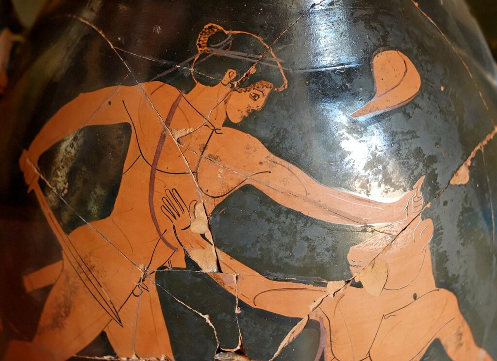 Θησέας και Μινώταυρος (λεπτομέρεια από αμφορέα)