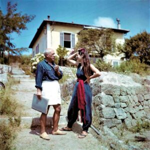 Pablo Picasso avec Françoise Gilot photographiés par Willy Rizzo à Vallauris, 1953