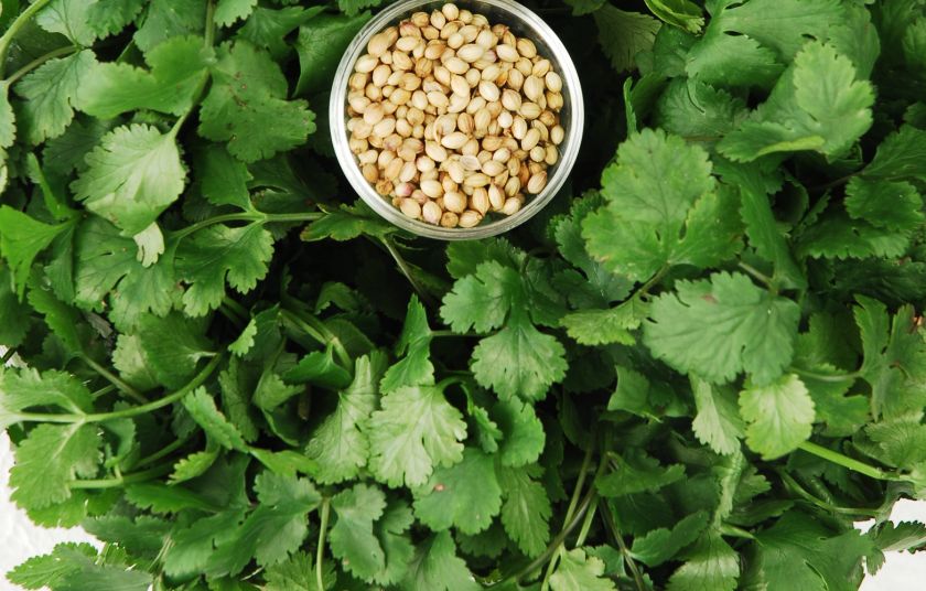 Τὸ κορίαννον= το κόλιαντρο (← μεταγενέστερο κολίανδρον ← κορίανδρον ←κορίαννον). Επίσης μυκηναϊκή λέξη: ko-ri-ja-do-no. O Γαληνός (ό. π.) τονίζει σχετικά με την αγκινάρα ότι είναι καλύτερο, αφού τη βράσει κανείς, έτσι να την τρώει, ἐπεμβάλλοντα κορίαννον, προσθέτοντας κόλιαντρο, αν την τρώει με λάδι, γάρο και κρασί […]