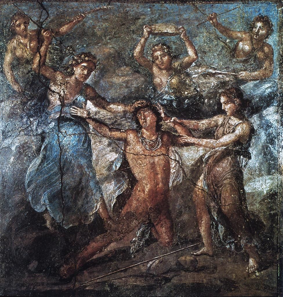 Ο Πενθέας ανάμεσα στις Βάκχες. Τοιχογραφία Πομπηίας