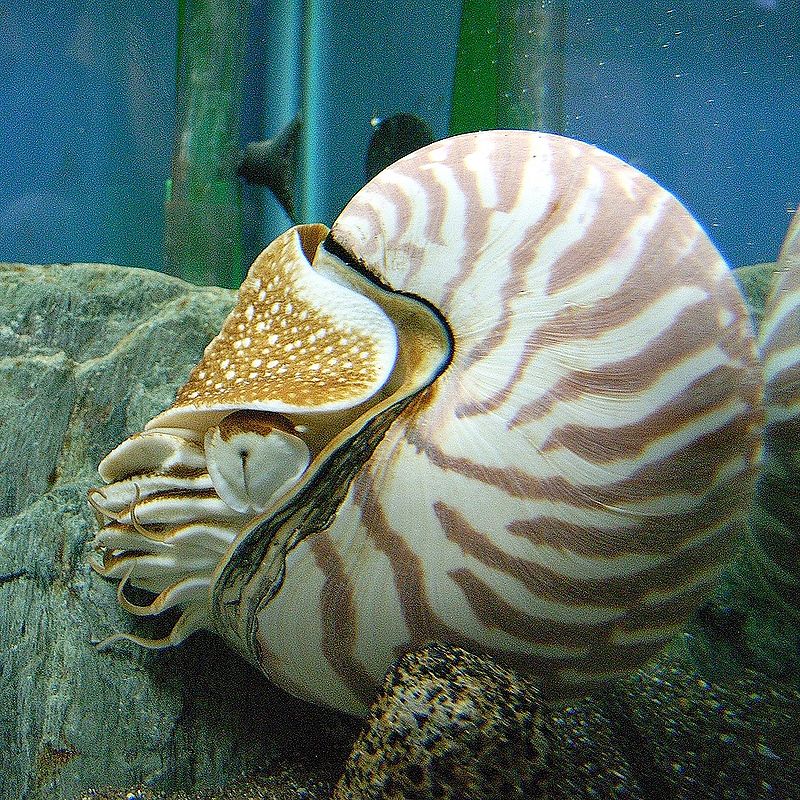 Ὁ ναυτίλος = το πανέμορφο μαλάκιο με το ελικοειδές κέλυφος. Θεωρείται ως ζωντανό απολίθωμα, γιατί παραμένει χωρίς εξέλιξη για εκατοντάδες χιλιάδες χρόνια∙ έχουν περιγραφεί 2.500 είδη απολιθωμένων Ναυτιλοειδών. Από το όστρακό του φτιάχνουν κομψοτεχνήματα.