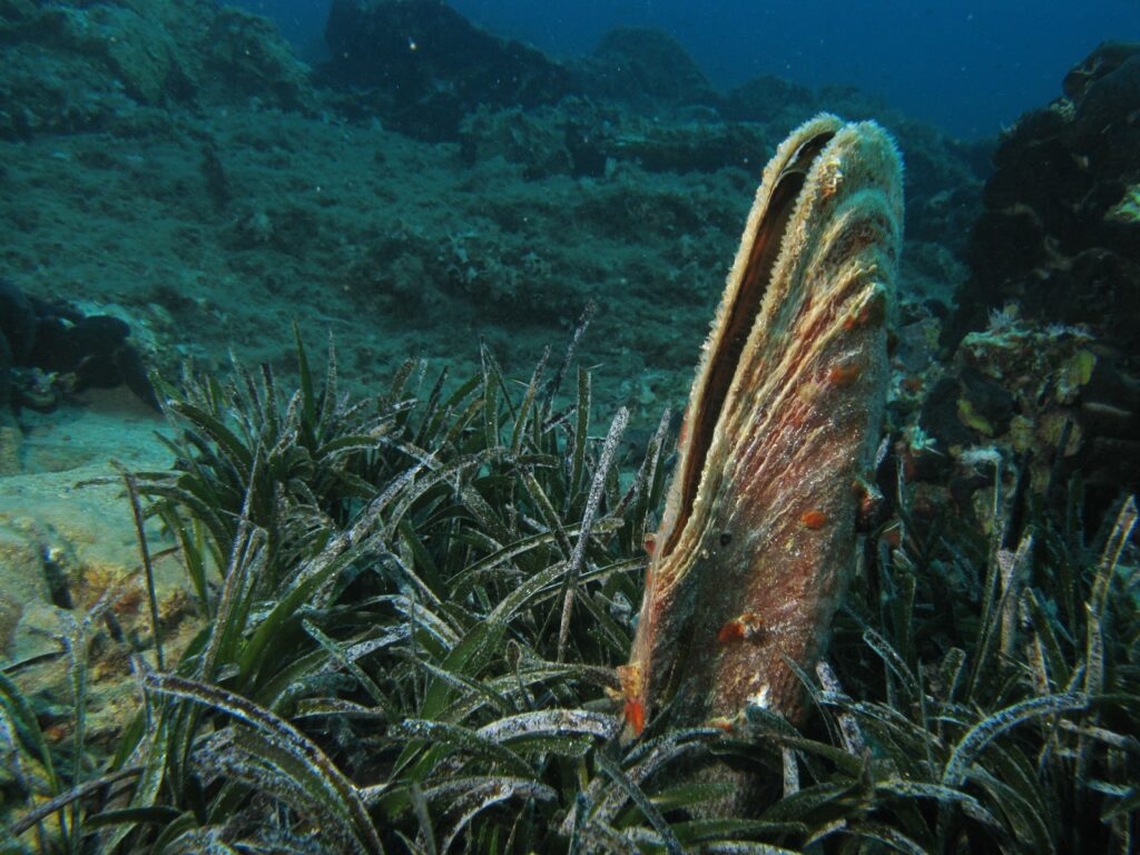 Ἡ πίννα = το μεγάλο δίθυρο μαλάκιο, η πίν(ν)α. Ζει όρθιο, με το κάτω μυτερό άκρο του χωμένο στον βυθό και στερεωμένο με τον βύσσο, την τούφα από μεταξένιες ίνες που θεωρούνται ιδιαίτερα ανθεκτικές. Αἱ δὲ πίνναι ὀρθαὶ φύονται ἐκ τοῦ βυσσοῦ, διαβάζουμε στον Αριστοτέλη. Τα νήματα αυτά χρησιμοποιούνταν για την κατασκευή αραχνοΰφαντων υφασμάτων, καλτσών και γαντιών στη Νότια Ιταλία και Σικελία. Αρκετά είδη πίνας συμβιώνουν με ένα καβουράκι ή μία μικρή γαρίδα, τον πιννοθήρα (πιννοφύλαξ ή πιννοτήρης στα αρχαία ελληνικά), που βρίσκει  προστασία μέσα στο όστρακό της και σε αντάλλαγμα την προειδοποιεί όταν εμφανιστεί κίνδυνος, και τότε η πίνα κλείνει απότομα τις θυρίδες της ⸺ […] ἐν ταῖς πίνναις οἱ καλούμενοι πιννοτῆραι8 (ἐμφύονται), μέσα στις πίνες  προσκολλώνται οι λεγόμενοι πιννοφύλακες, γράφει επίσης ο Αριστοτέλης. Και αλλού σημειώνει: Ἔχουσι δ’ ἐν αὑταῖς πιννοφύλακα, αἱ μὲν καρίδιον αἱ δὲ καρκίνιον∙ έχουν δε μέσα τους έναν πιννοφύλακα, άλλες γαριδούλα, άλλες καβουράκι.