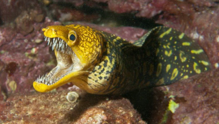 Ἡ σμύραινα ή μύραινα = η σμέρνα (← μεσαιωνικό σμέρινα ← σμύραινα ). Το σώμα της μοιάζει με του φιδιού και κολυμπάει με κινήσεις φιδιού. Είναι άγριο ψάρι και αμυνόμενη επιτίθεται στον άνθρωπο∙ το δάγκωμά της είναι οδυνηρό.13 Οι αρχαίοι το περιελάμβαναν στα έξοχα εδέσματα.