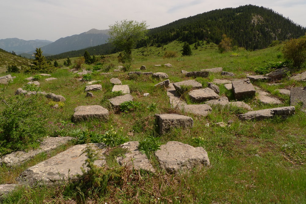 Ερείπια του αρχαίου ναού στη θέση Πυρά τού Ηρακλέους στην Οίτη