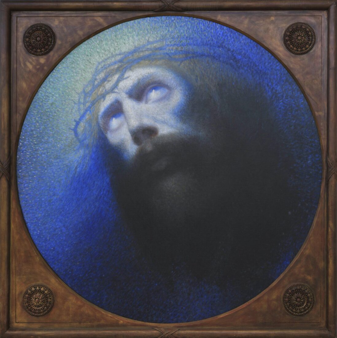 Around 1900, Konstantinos Parthenis painted his emblematic Christ (oil on canvas, 200 × 200 cm, National Gallery, Athens https://www.nationalgallery.gr/artwork/o-christos/), a monumental circular composition in which the face of Christ appears on a supernatural scale. With a hypnotic expression and the gaze lifted ecstatically upward, Parthenis’s Christ is bathed in blue light, creating an atmosphere of mysticism and profound introspection. Drawing on Art Nouveau and French Symbolism, Parthenis modernised the sacred, idealising and almost dematerialising the figure in order to depict a deity surpassing the limits of human experience.