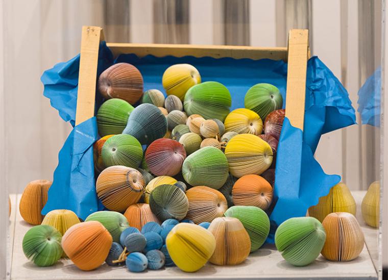 The original innovation of Pavlos lies in the idea of cutting the posters into strips (massicot) with which he initially constructed wall-mounted abstract compositions placed in plexiglass boxes. Soon, from his early compositions, which echo the influences of European abstract trends of the post-war period, Pavlos turned, in the mid-1960s, to figurative themes. In 1966, he began to reconstruct familiar forms of everyday objects: flower pots (1966), fruit, food (sandwiches 1966, la vache qui rit 1966), women’s corsets (1966), gloves (1967), keys (1967), ashtrays (1967), colorful ties (1963-74), shirts (1991), men’s jackets (1968), coats on hangers and hats hanging on the wall (1968), bottles, cameras (1984), sunglasses (1967), car tyres (1968-1984), furniture, flags, columns (1968), feathers (1970), books and bookcases (1988). In this way, and thanks to his collaboration with Alexandre Iolas who presented “Still Life” at Galerie Iolas (1973), Pavlos expanded an already imaginative European subject matter that had reached its peak in the 17th century with new content, highlighting the age of the consumer object and the take-off of consumer capitalism in the Western Hemisphere. In addition, he expanded Matisse’s original concept and added two new media to the materials of postwar art: the colorful paper strips and molded plexiglass that were trademarks of his works. To these two materials, in 1971, would be added the thin pot wire, so familiar in our everyday life and so cheap, that in Pavlos’ imaginative craftsmanship it would acquire an aesthetic substance as if he were drawing with charcoal.