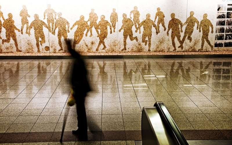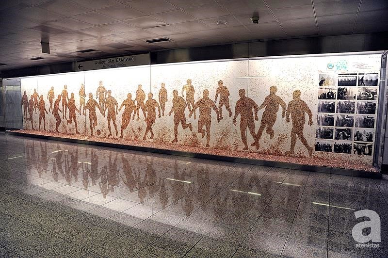 In 1973, when he started working with Alexandros Iolas at the Folkway Museum in Essen, he made the second happening of his career. He drew invisible scenes of football players and basketball athletes on the walls with glue that did not dry quickly. The project was completed with audience participation, when paper mache was thrown into the glue and the athletes appeared. A similar work entitled “Footballers, 2000” is currently on display at the Attiko Metro’s Omonia Station.