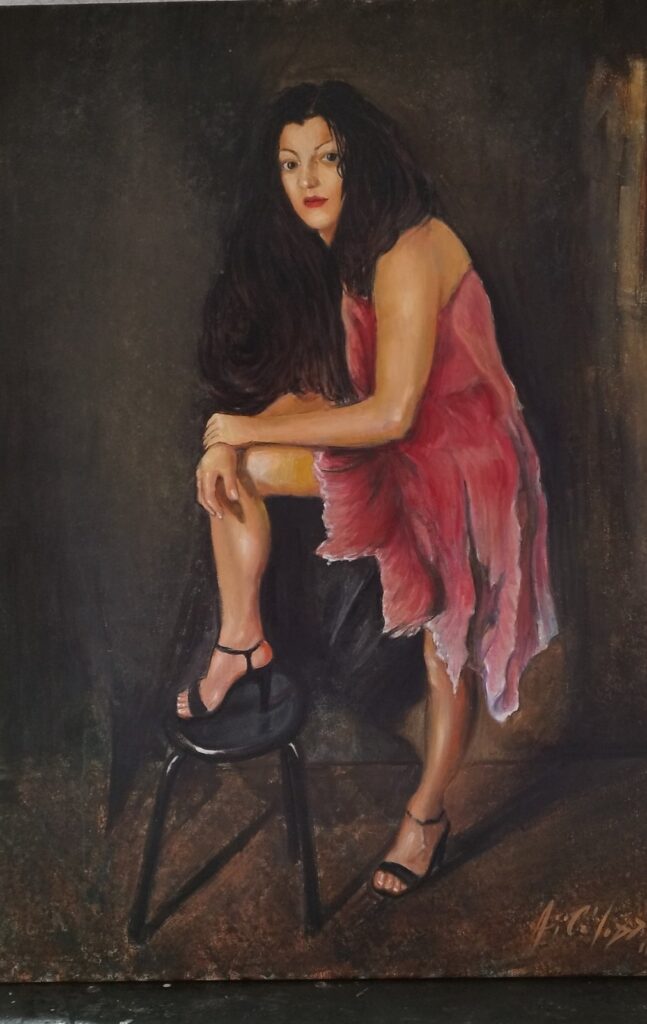 Αϊβάζογλου Αχιλλέας, «Σου ποζάρω» (2021 ελαιογραφία 100×70 εκ.) Η πόζα ως διαπραγμάτευση.