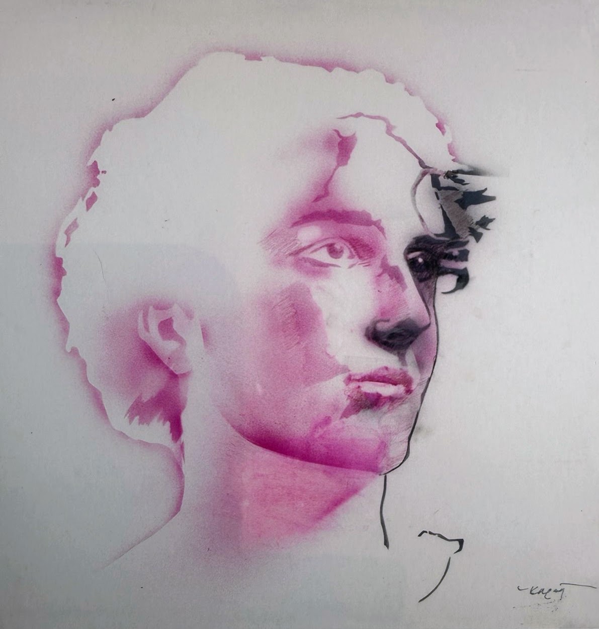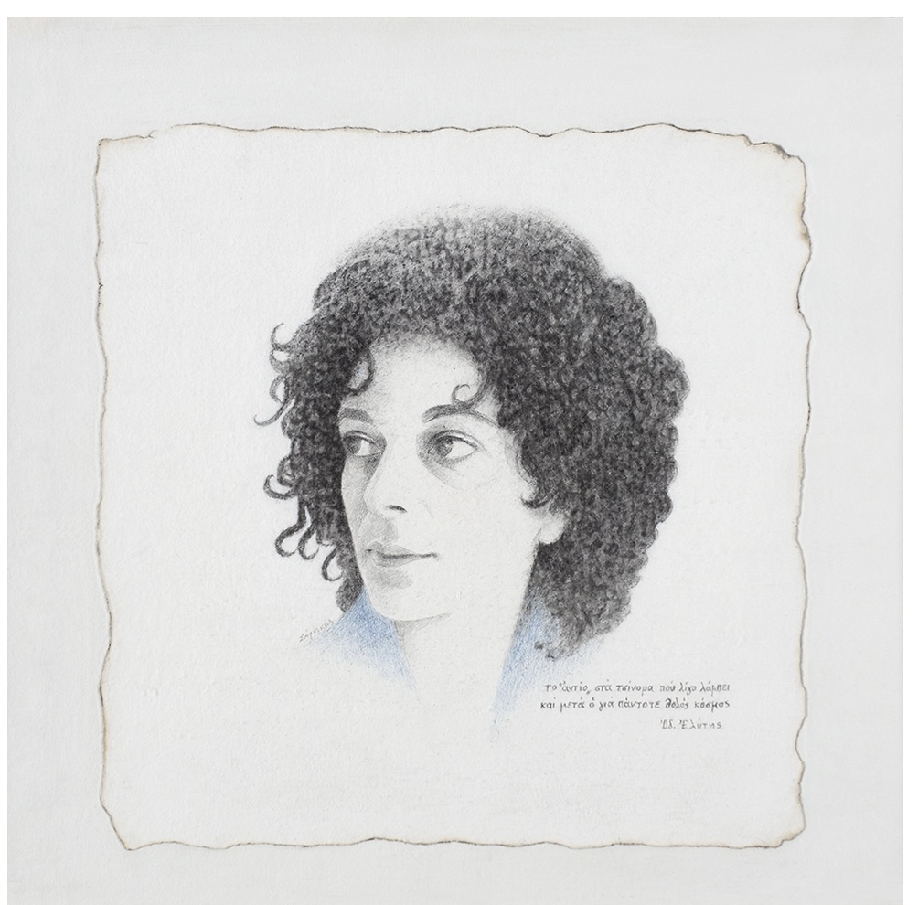 Καράς Χρίστος, Πορτρέτο Μικτή́ τεχνική́ 50×50 εκ. Ιδεαλιστική προσωπογραφία που αιωρείται ανάμεσα σε ανάμνηση και εικόνα/ιδέα