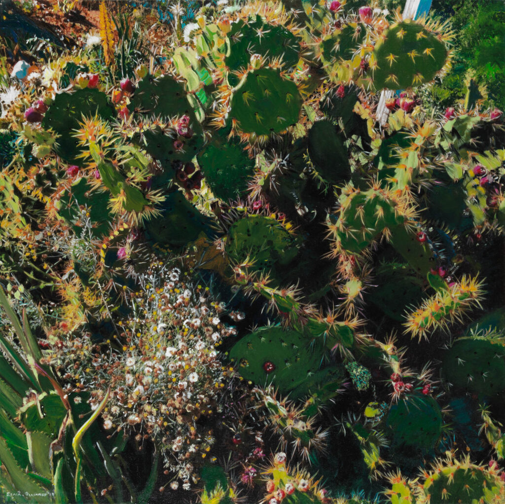 Η  πρόσφατη σειρά με τίτλο Όψεις και Απόψεις2, που εκτέθηκε στην Αθήνα (Σπίτι της Κύπρου, Οκτώβρης 2023) και στη Λευκωσία (Gallery Gloria, Απρίλης 2024), συνεχίζει το διάλογο με την πολύχρωμη ενότητα λουλουδιών Όψεις και Απόψεις1 από 2019. Και αυτή, είναι μια σαφής δήλωση της Σίλιας Φιλίππου, ότι στην εποχή μας, υπάρχουν ακόμη ζωγράφοι που αντλούν έμπνευση από την περίπλοκη απειρότητα του φυσικού τοπίου, χωρίς να καταφύγουν σε εύπεπτες λύσεις του οπτικού καταναλωτισμού.