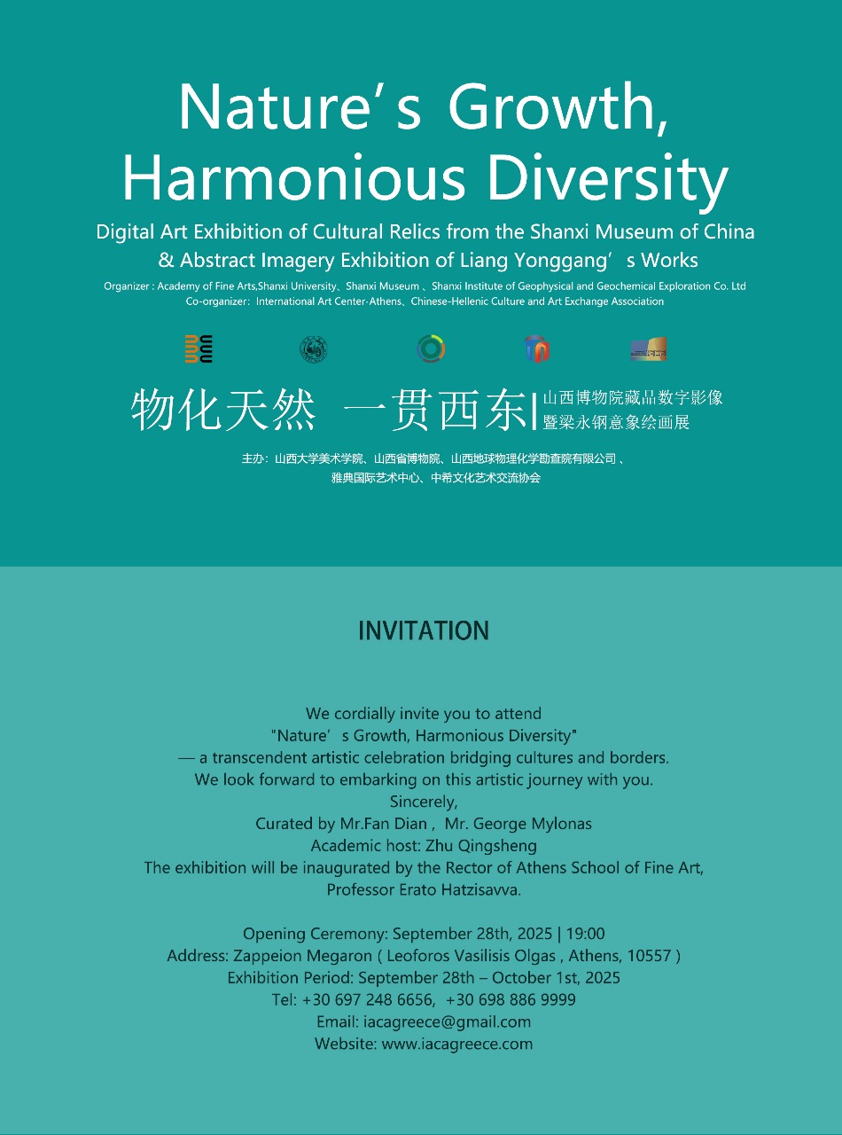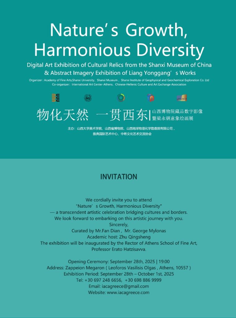 The exhibition of Chinese artist Liang Yonggang, entitled Nature’s Growth, Harmonious Diversity (Zappeion, September 28 – October 1, 2025), introduces the Greek public to a distinctive manifestation of Chinese spirituality through the painting of a creator with profound philosophical reflection. Liang’s thought, shaped by Confucianism, Taoism, and Buddhism, does not confine itself within dogmatic truths; rather, it constitutes a worldview in which Nature, Humanity, and the Cosmos exist in continuous harmony and interaction.