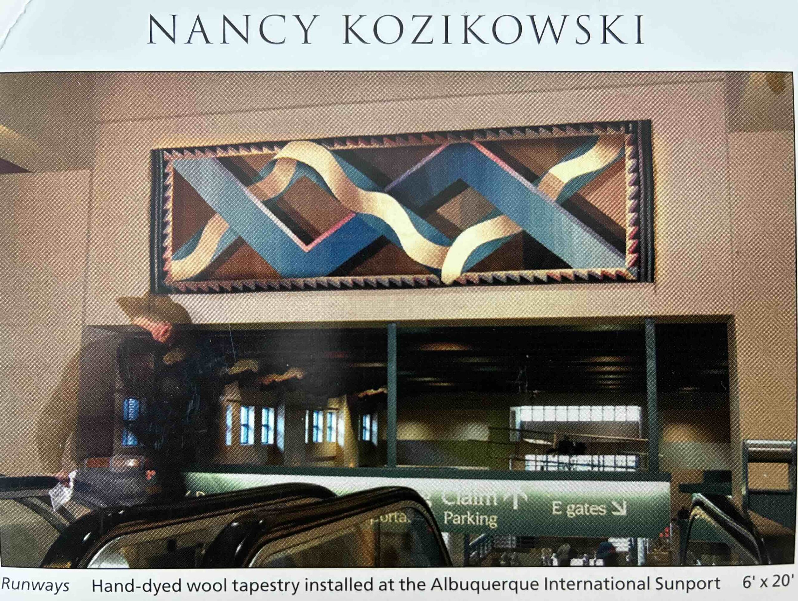 Η Nancy Kozikowski (Νάνσι Κοζικόφσκι) ανήκει στην διεθνή γενιά δημιουργών, μαζί με τις Sheila Hicks (https://www.sheilahicks.com/), Lenore Tawney (https://lenoretawney.org/), Olga de Amaral (https://olgadeamaral.art/), που από τη δεκαετία του 1960, επανερμηνεύουν την ύφανση ως πρωτογενές μέσο έκφρασης και όχι απλά ως βιοτεχνική δεξιότητα. Η Kozikowski, εστιάζοντας στις αυτόχθονες υφαντικές παραδόσεις των ιθαγενών αμερικανικών και μεξικανικών κοινοτήτων, μετατρέπει τα χειροποίητα χαλιά και τις ταπισερί της σε τοπία συμμετρίας και μνήμης, αναδεικνύοντας τον ρυθμό και την πνευματικότητα των αρχέγονων συμβόλων και των γεωμετρικών σχημάτων. Αυτό που την ξεχωρίζει είναι η άρνησή της να απομακρυνθεί από τη λαϊκή παράδοση. Αντίθετα, την ενσωματώνει ενεργά με μια μινιμαλιστική λιτή αισθητική, συνδυάζοντας γεωμετρικά μοτίβα, αρχαϊκά σύμβολα, συμμετρικές δομές που προσεγγίζει την τέχνη της Ανατολής.