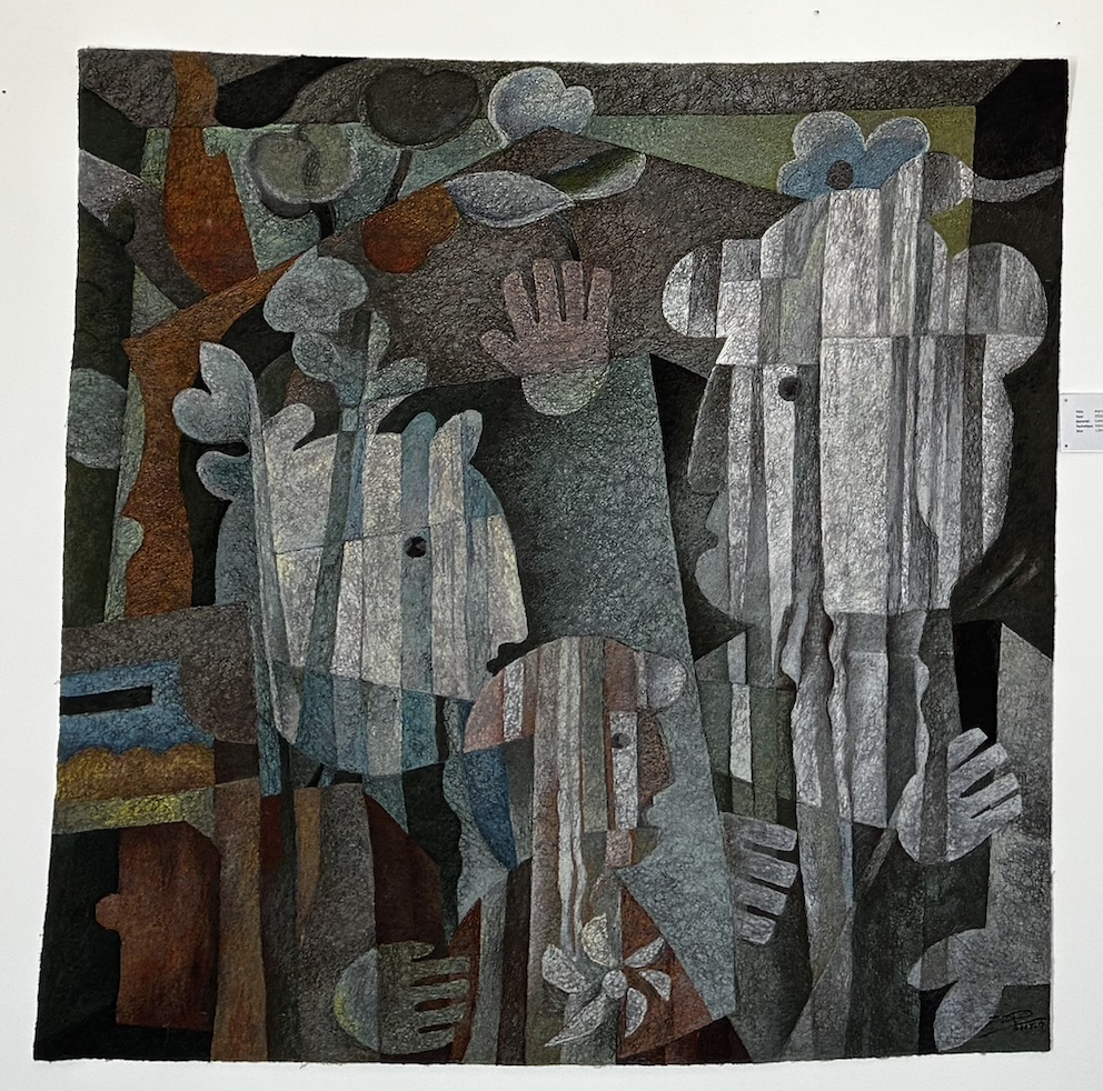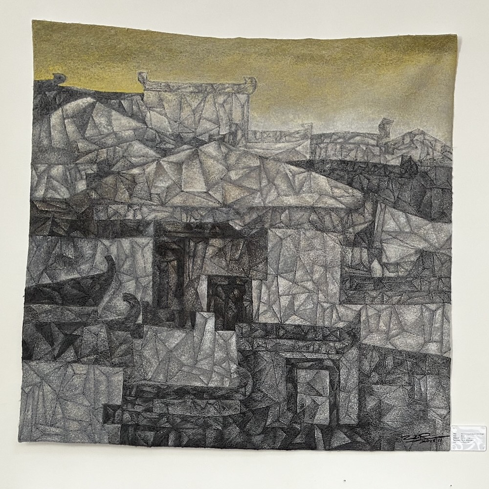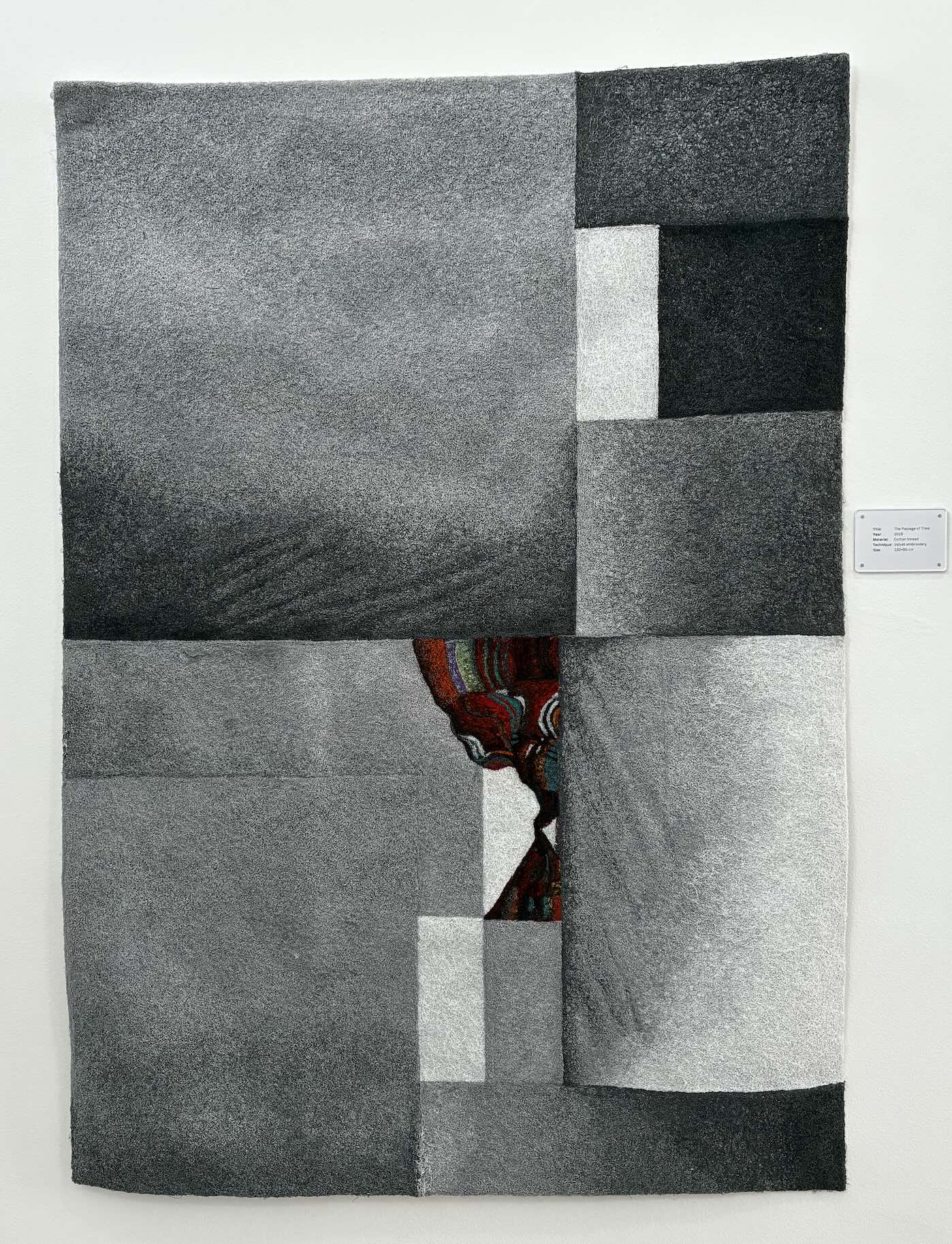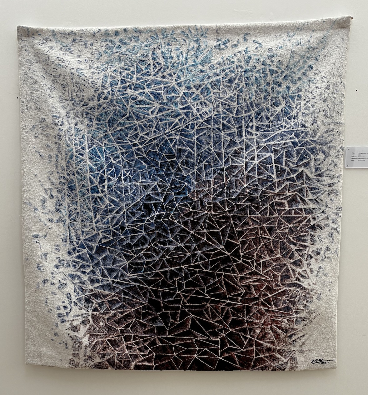 Zhuang Ziping (b. 1958, Dalian, China), for his part, focuses on the dynamic energy of fibers to compose works that condense experience into abstract topographies. His approach is a visual meditation on matter, space, and the unconscious. His textile compositions sometimes resemble cubist energy fields and at other times resemble grids of consciousness, as if they were psychic explosions. It is as if he gives form to forces that activate memory, sensation, and contemplation.