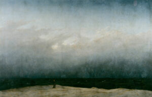 Στο έργο Καλόγερος στην Παραλία (Monk by the Sea (1808–1810) του Friedrich, ο μοναχός ενσαρκώνει τη ρομαντική συνείδηση που στέκει ενώπιον του απείρου, βιώνοντας ταυτόχρονα την ασημαντότητα και τη μυστική συγγένεια του ανθρώπου με το απόλυτο: η ανθρώπινη μορφή συρρικνώνεται μπροστά στην απεραντοσύνη του ουρανού και της θάλασσας και το τοπίο καθίσταται ένας μεταφυσικός χώρος εμπειρίας, όπου κυριαρχούν η σιωπή και το κενό.