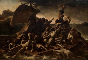 Στη Γαλλία η ρομαντική διάθεση του Eugène Delacroix (1798-1863) και του Théodore Géricault (1791-1824) εκδηλώθηκε μέσα από τη ζωγραφική σκηνών εμπνευσμένων από ιστορικά γεγονότα της εποχής, από την πολιτική επικαιρότητα και από την απεικόνιση εξωτικών τόπων, που επισκέφτηκαν ή φαντάστηκαν υπό την έλξη της Ανατολής. Χαρακτηριστικά, στην Ελευθερία Οδηγεί τον Λαό (1830), ο Delacroix απέδωσε την εξέγερση του Ιουλίου 1830 ως σύγχρονο γεγονός, συνδυάζοντας την πολιτική πραγματικότητα με την αλληγορία, αφού η Ελευθερία εμφανίζεται συγχρόνως ως ιδεώδες και ως αισθησιακή λαϊκή μορφή. Αντίστοιχα, στη Σχεδία της Μέδουσας (1819) ο Géricault μετέτρεψε ένα πρόσφατο ναυάγιο που είχε συγκλονίσει τη γαλλική κοινή γνώμη σε εικόνα ακραίας ανθρώπινης δοκιμασίας, προσδίδοντας στην ιστορική ζωγραφική δραματική αμεσότητα και σφοδρό συναισθηματικό φορτίο.