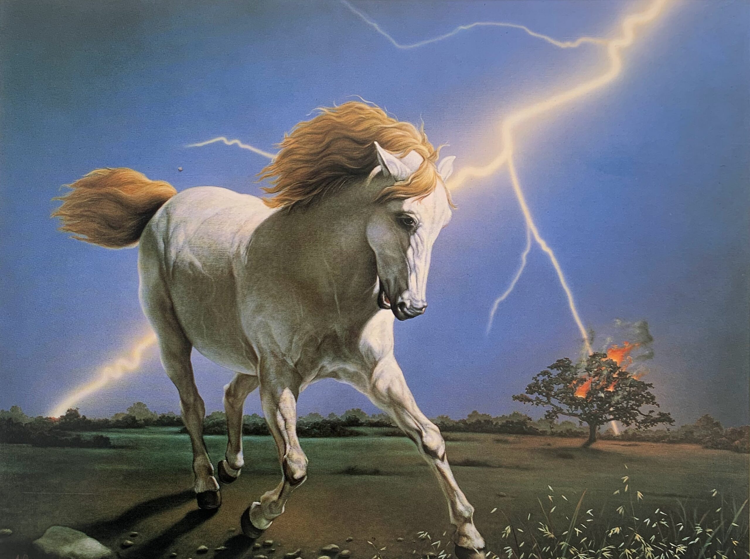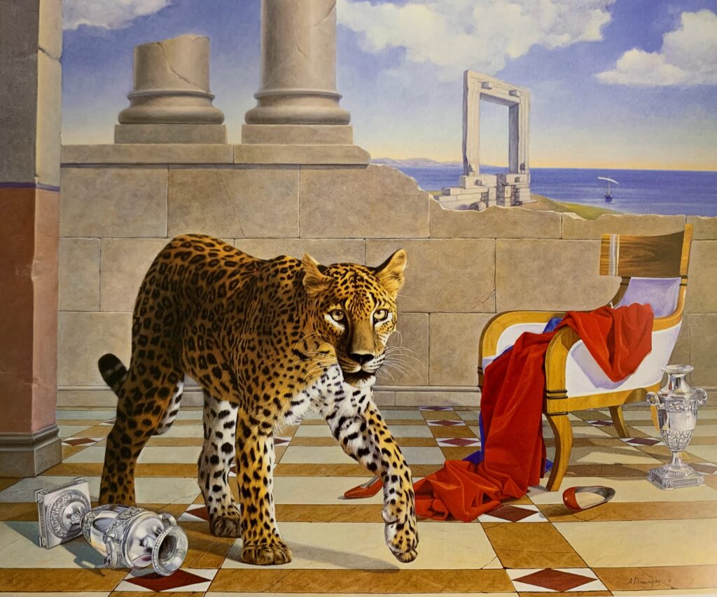 Με αφετηρία αυτή τη σημειωτική οπτική προσέγγιση των στοιχείων της εικόνας, ο Δρούγκας δημιούργησε συνθέσεις που δεν είναι μόνο οπτικά συναρπαστικές αλλά και βαθιά διεισδυτικές, επιδεικνύοντας μια ξεχωριστή ευαισθησία απέναντι στον άνθρωπο και τα πρότυπά του. Όταν ζωγραφίζει φίδια, πάνθηρες και κύκνους, συχνά συνυφασμένα με θέματα μυθολογικής λαγνείας, ερωτισμού, έκστασης και προπατορικού αμαρτήματος, ο Δρούγκας εξερευνά μεταφορικά την ανθρώπινη κατάσταση και τις κοινωνικές δομές που διαμορφώνουν την επιδίωξη της ευτυχίας. Αυτές οι συνθέσεις είναι κωδικοποιημένες σημειωτικές αντανακλάσεις οικείων μύθων στις οποίες ο θεατής καλείται να αποκρυπτογραφήσει τα διαφορετικά νοηματικά επίπεδα κάθε ζωγραφιάς. Παρομοίως, όταν ένας κεραυνός σκίζει τον ουρανό, ενώ τα άλογα τρέχουν στο προσκήνιο προς το θεατή, μπορεί να ερμηνευτεί μόνον ως εκδήλωση του διαρκούς πανικού που προκαλεί η απουσία λογικής, το ά-λογο.