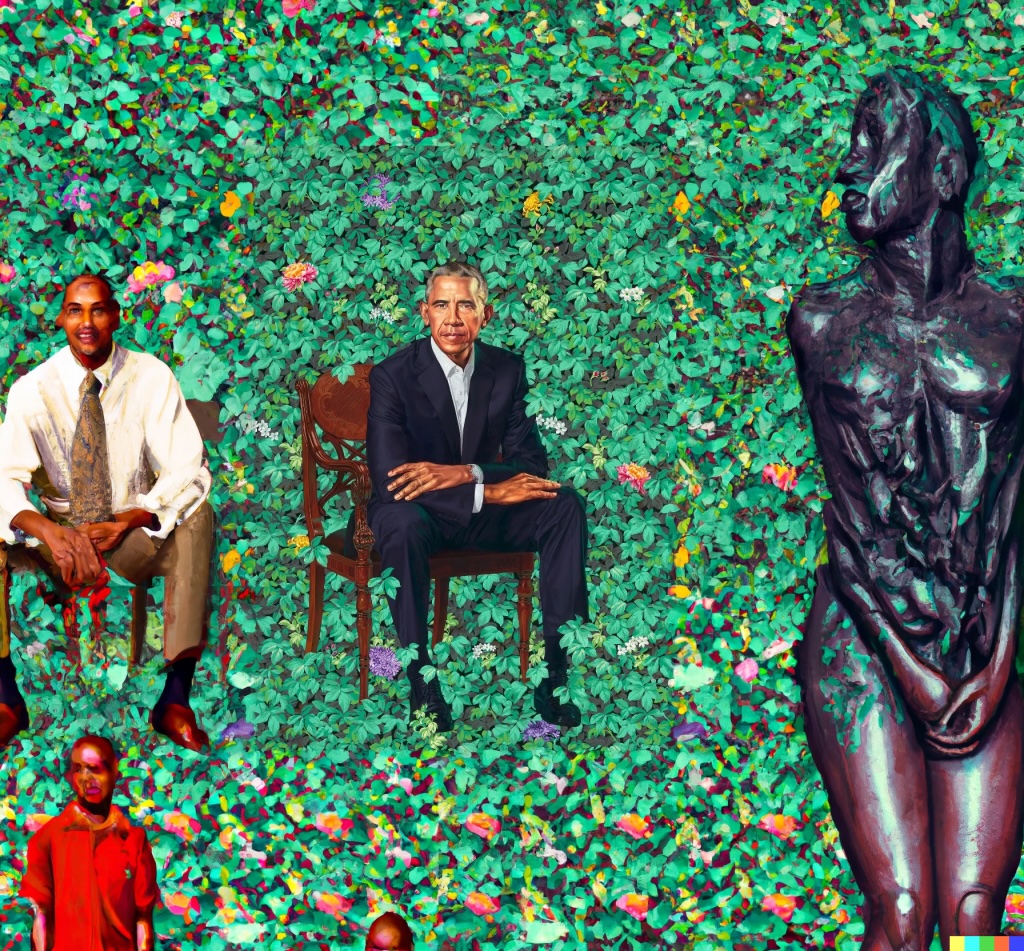 Χαρακτηριστικό παράδειγμα είναι η περίπτωση του ψηφιακά επεκτεινόμενου πορτραίτου του Barack Obama από τον Kehinde Wiley, με το εργαλείο outpainting του DALL-E, όπου η τεχνητή νοημοσύνη παράγει νέο, συνθετικό περιβάλλον γύρω από το έργο, χωρίς να κρύβει τη μη ανθρώπινη προέλευση, αλλά υπογραμμίζοντας την ανοιχτή ερμηνεία της εικόνας. Γιατί, η ψηφιακή επέκταση της εικόνας, πέρα από τα αρχικά της όρια, δεν επιχειρεί να πλαστογραφήσει, αλλά να φανταστεί, να συμπληρώσει, να συνεχίσει την εικόνα. Σε αυτή την προοπτική, η πλαστότητα γίνεται μορφή ερμηνευτικής παρέμβασης και συνεργασίας ανθρώπου-μηχανής, διευρύνοντας τα σύνορα της καλλιτεχνικής δημιουργίας πέρα από το χειροποίητο. (Artnet News, 2022)