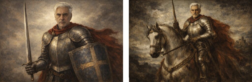 As a tool, artificial intelligence reconstructs hybrid images, bringing contemporary visual culture into dialogue with historical iconography. The process, however, is not neutral. The selection of an artistic style, a historical period, or an emblematic role (warrior, leader, mythic figure) is an interpretive act: it reveals what we deem “glorious,” “heroic,” “classical,” or “timeless,” and how we wish—imaginatively—to insert ourselves into such frameworks. AI, therefore, operates as a mediator between biographical identity and the collective imaginary. It does not replace history; rather, it makes visible the mechanisms through which history is continually constructed, selected, and represented through images.