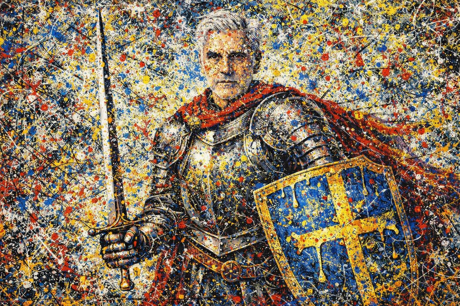 Ζωγραφική Μεταμόρφωση σε στιλ Pollock: από πορτρέτο σε ζωγραφικό συμβάν—εννοιολογική σύνθεση, όχι τεκμήριο.