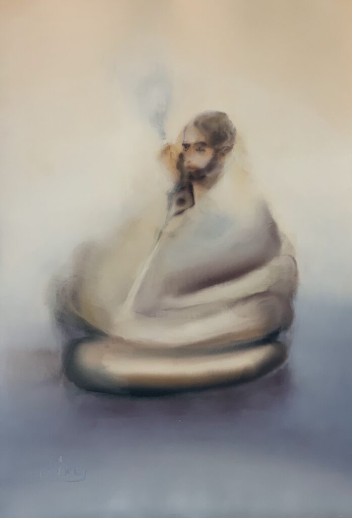 Kypraios worked across these domains in parallel, hence the internal coherence of this new cycle: Dreams converse with Erinyes, Odines, and Erebos without repeating them. They shift the focus from denunciation or depiction toward monumental, meditative elaboration. Through sfumato, which dissolves contours into tonal gradations, and his persistent use of emblematic motifs, Kypraios creates a poetic topography of the unconscious — an archive of visible shadows where human experience is not erased but absorbed into consciousness, takes form.