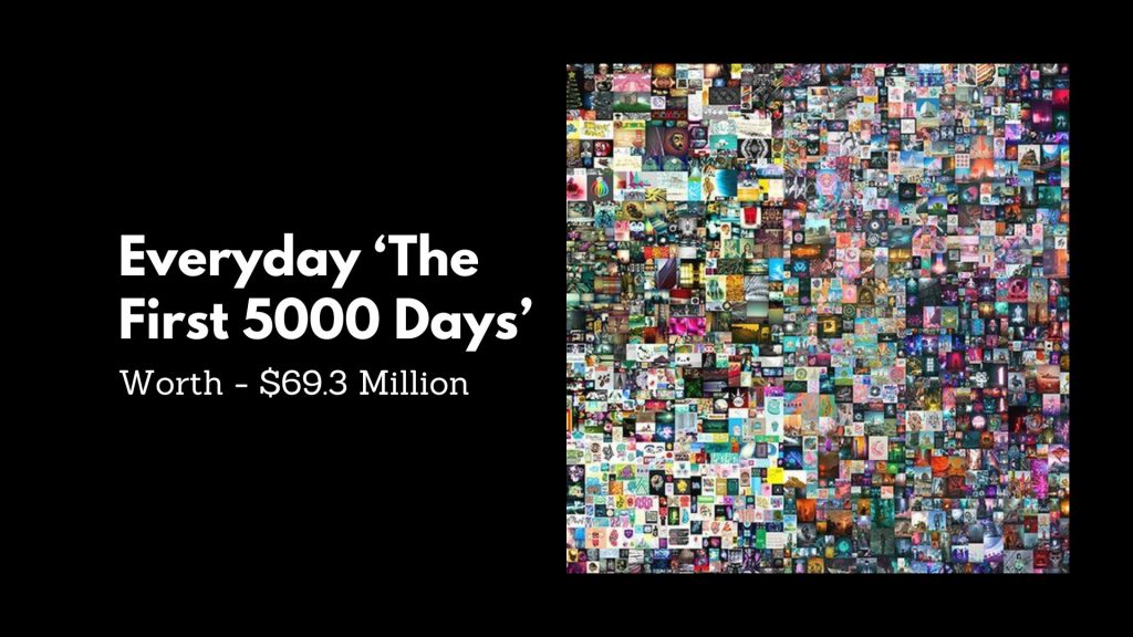 NFTs και ο μετασχηματισμός της τέχνης: Ενώ η μπανάνα του Cattelan αναδεικνύει τον παραλογισμό της εμπορευματοποίησης, το Everydays: The First 5000 Days του Beeple είναι ένα παράδειγμα του μετασχηματιστικού αντίκτυπου της ψηφιακής τεχνολογίας στην ιδιοκτησία και την αξία της τέχνης. Το έργο, αγοράστηκε από τον Vignesh Sundaresan (γνωστός και ως Metakovan) έναντι 69,3 εκατομμυρίων δολαρίων (42.329 Ether) σε δημοπρασία του οίκου Christie’s το 2021, και σηματοδότησε την τομή στην υιοθέτηση της τεχνολογίας blockchain από τον κόσμο της τέχνης (Christie’s, 2021).