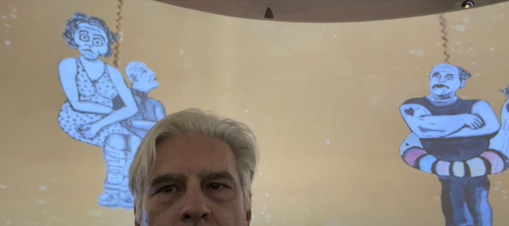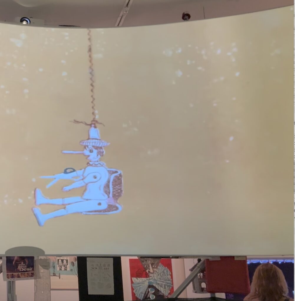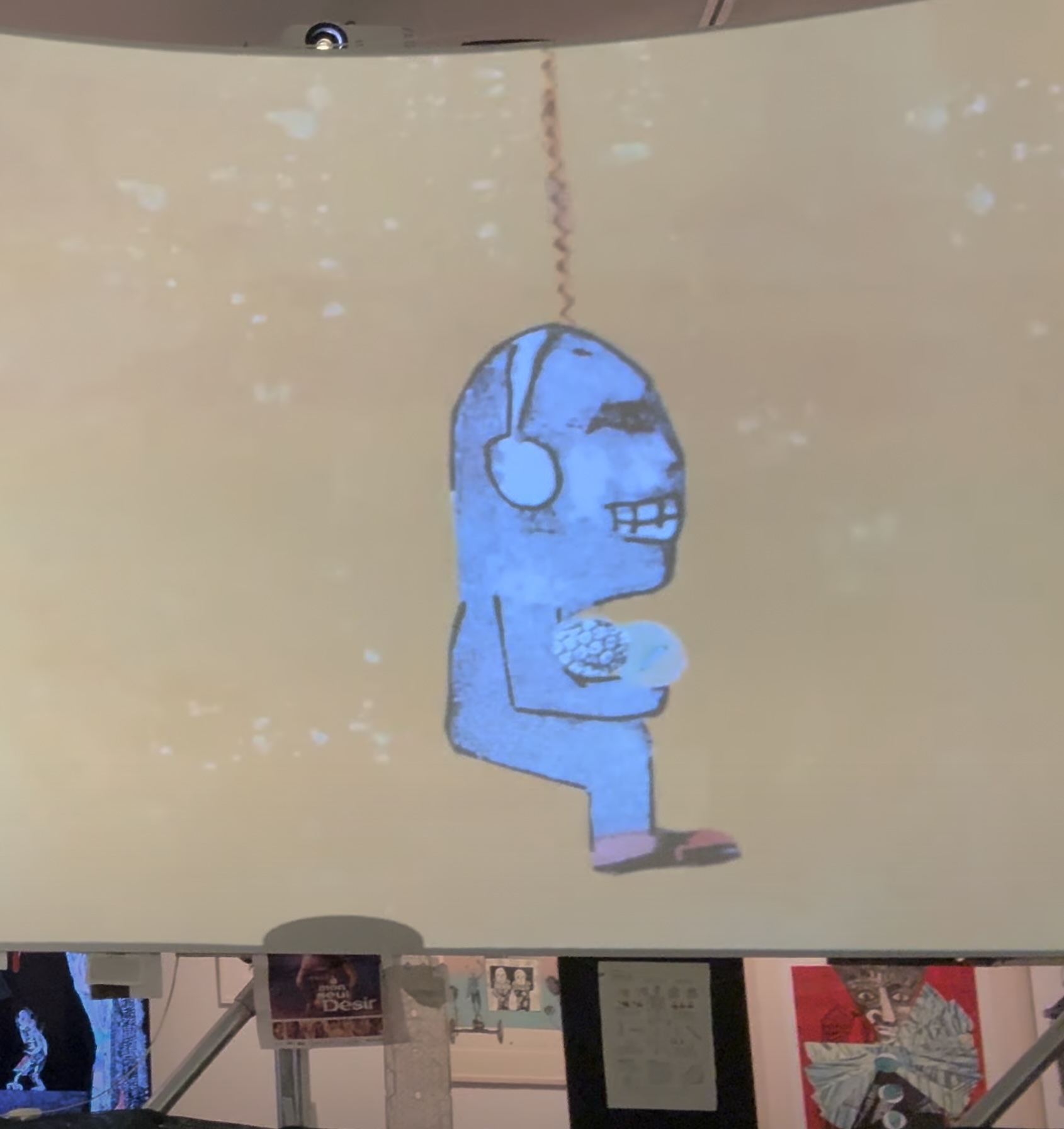 Εδώ, η αφήγηση αποκτά κινηματογραφική ροή χωρίς αρχή και τέλος. Η εμπειρία θυμίζει expanded cinema όπως το οραματίστηκε ο Αμερικανός θεωρητικός Gene Youngblood (1942-2021) δηλαδή, μια διαδικασία όπου η συνείδηση εξωτερικεύεται μπροστά στα μάτια του θεατή (Greenberger 2021). Ο επισκέπτης βλέπει τις μορφές να περιφέρονται γύρω του, όχι σαν διακοσμητικά μοτίβα, αλλά σαν ψυχολογικές παρουσίες, μετατρέποντας το εσωτερικό του καρουζέλ σε περιβάλλον ζωντανής ψυχο-γεωγραφίας. Ας σημειωθεί, ότι ο θεατής δυσκολεύεται να παρατηρήσει τις εικόνες. Καθώς κινούνται με ταχύτητα, τον παρασύρουν στην κυκλική τους κίνηση.