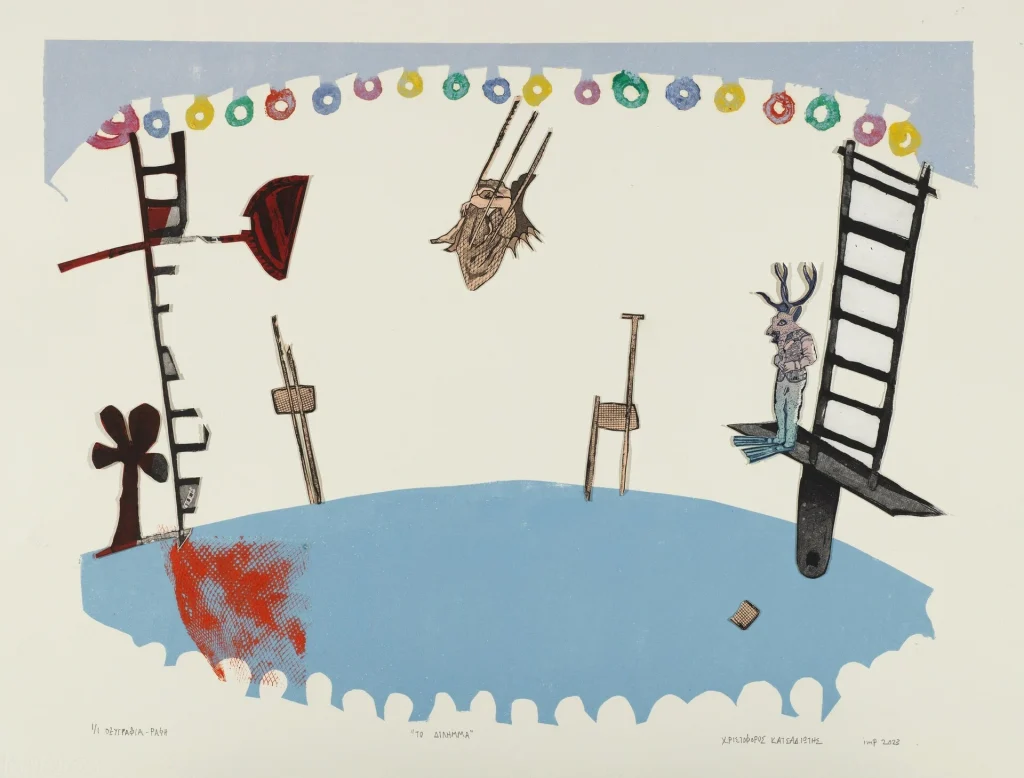 Η έκθεση στο Μουσείο Μπενάκη (Πειραιώς 138 29/5 – 27/7/25) με τίτλο «Στο εργαστήρι του Χριστόφορου Κατσαδιώτη» εμπεριέχει μια φαινομενική αντίφαση: σε έναν μικρό, περιορισμένο χώρο του Μουσείου παρουσιάζεται μια πυκνή, εννοιολογικά συμπαγής και αισθητικά φορτισμένη έκθεση. Εδώ εντοπίζεται η πρώτη ιδιαιτερότητα, καθώς ανατρέπεται η προσδοκία της κλίμακας. Πώς είναι δυνατόν να χωρέσει ένα καρουζέλ σε ένα δωμάτιο; Με την αντιστροφή των μεγεθών και την υπέρβαση του φυσικού πλαισίου, ο θεατής βιώνει κάτι πολλαπλάσιο του χώρου που τον περιβάλλει. Αυτή η δυσανάλογη εμπειρία δημιουργεί την πρώτη ένταση της έκθεσης.