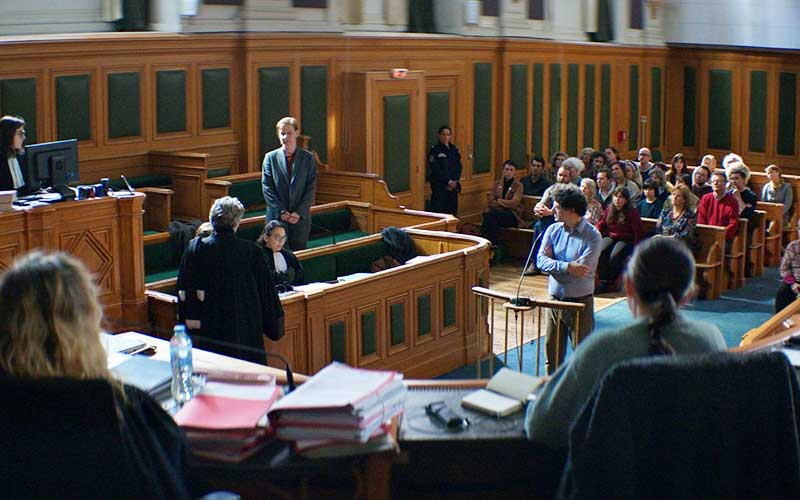 Για το δικαστικό σύστημα η εύρεση της μιας και μοναδικής αλήθειας φαίνεται εφικτή. Στη δίκη χρησιμοποιείται ως τεκμήριο η κατάθεση του ψυχαναλυτή του Σαμουέλ, που γνωρίζοντας τη Σάντρα μόνο μέσα από την υποκειμενική ματιά του συντρόφου της, ερμηνεύει τη δύναμη της ως αναλγησία, θεωρεί τις ικανότητες και την επιτυχία της ευνουχιστικές για τον Σαμουέλ και τον ίδιο θύμα μιας χειριστικής γυναίκας.