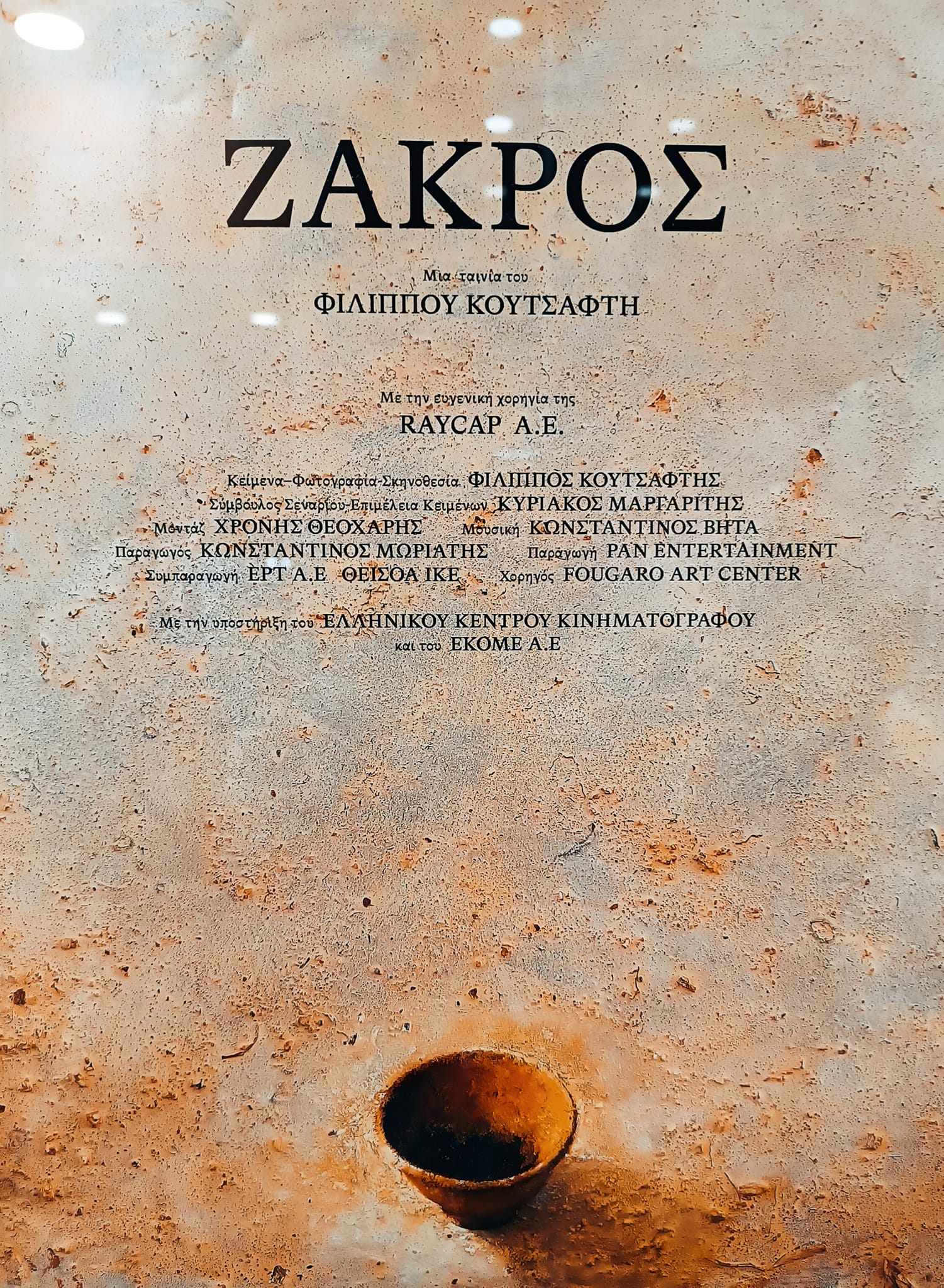 Ένας τόπος όπου η ιστορία μοιάζει να μην έχει ορισμένη αρχή αλλά να χάνεται στα βάθη των παρελθόντων καιρών. Ένας τόπος που μοιάζει να επιμένει και να προβάλλεται αναλλοίωτος στο αβέβαιο του μέλλοντος χρόνου. Δεν είναι ο μοναδικός αρχαίος τόπος στη χώρα μας που έχει αυτές τις ιδιότητες. Αλλά είναι ένας από εκείνους πάνω τους οποίους ένας ποιητής της εικόνας και του λόγου εστίασε την προσοχή του. Μετά την Ελευσίνα και την Αρκαδία, ήρθε η σειρά της Ζάκρος να προσελκύσει την ευαισθησία του Φίλιππου Κουτσαφτή. Με πρώτους και κύριους ωφελημένους, πέρα από τον ίδιο, εμάς τους θεατές.