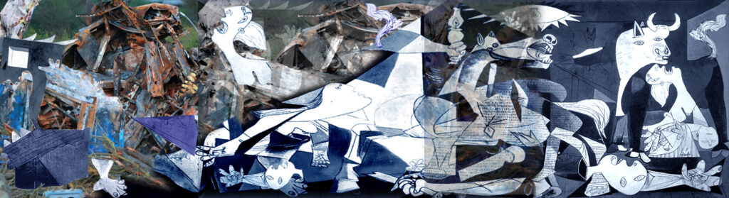 **Το πανό της φωτογραφίας «TRENICΑVERSE», εμπνευσμένο από την GUERNICA, φιλοτεχνήθηκε από τους μαθητές του Σχολείου Φυλακών Κέρκυρας, και με αυτό ο Σύλλογος που στηρίζει το Σχολείο συμμετείχε στην πορεία που έγινε στην Κέρκυρα, δύο χρόνια μετά το πολύνεκρο δυστύχημα των Τεμπών.