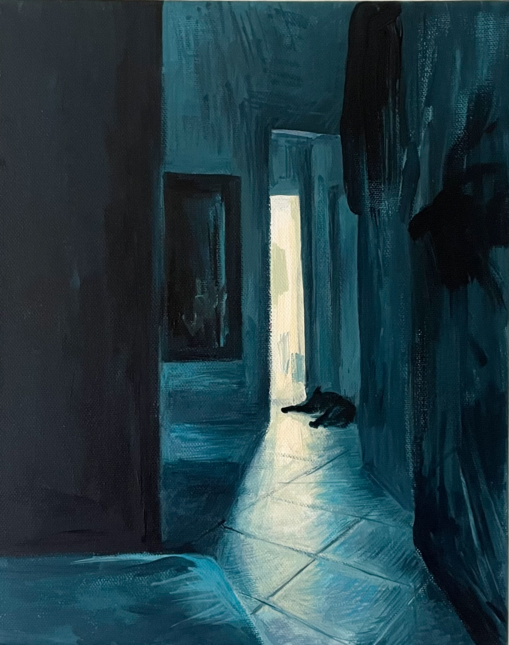 Ο μέσα χώρος είναι ταυτόχρονα και ο ψυχικός χώρος του δημιουργού, της ίδιας της Άσπας Μικάλεφ. Αυτό είναι νομίζω και το ιδιαίτερο χαρακτηριστικό της έκθεσης. Τα έργα είναι χαμηλόφωνα, διακριτικά, τρυφερά, απροσποίητα και νιώθει κανείς ότι η αποσπασματική απεικόνιση χώρων -με ελάχιστες τις εξαιρέσεις όπου βλέπουμε ένα σώμα ή ένα μέρος σώματος- είναι μια αυτοπροσωπογραφία, της ίδιας της ζωγράφου, που απεικονίζεται μέσα από τον τρόπο που βλέπει τους χώρους που αγαπά. Τους χώρους που της είναι οικείοι και φιλοξενούν την ωριμότητα της υπαρξιακής γαλήνης στο «εδώ και τώρα». Κι ενώ βλέπουμε πόρτες και παράθυρα, έπιπλα και χαραμάδες φωτός διακρίνουμε και μια φάση δημιουργικής ωριμότητας που αφορά και την εικαστική της πορεία.