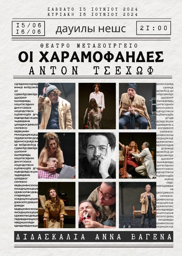 Παράσταση με τίτλο «Οι χαραμοφάηδες», βασισμένη σε διηγήματα του Τσέχωφ, η οποία είναι αποτέλεσμα σεμιναρίου, θα παρουσιαστεί στο θέατρο «Μεταξουργείο» στις 15 και 16 Ιουνίου.