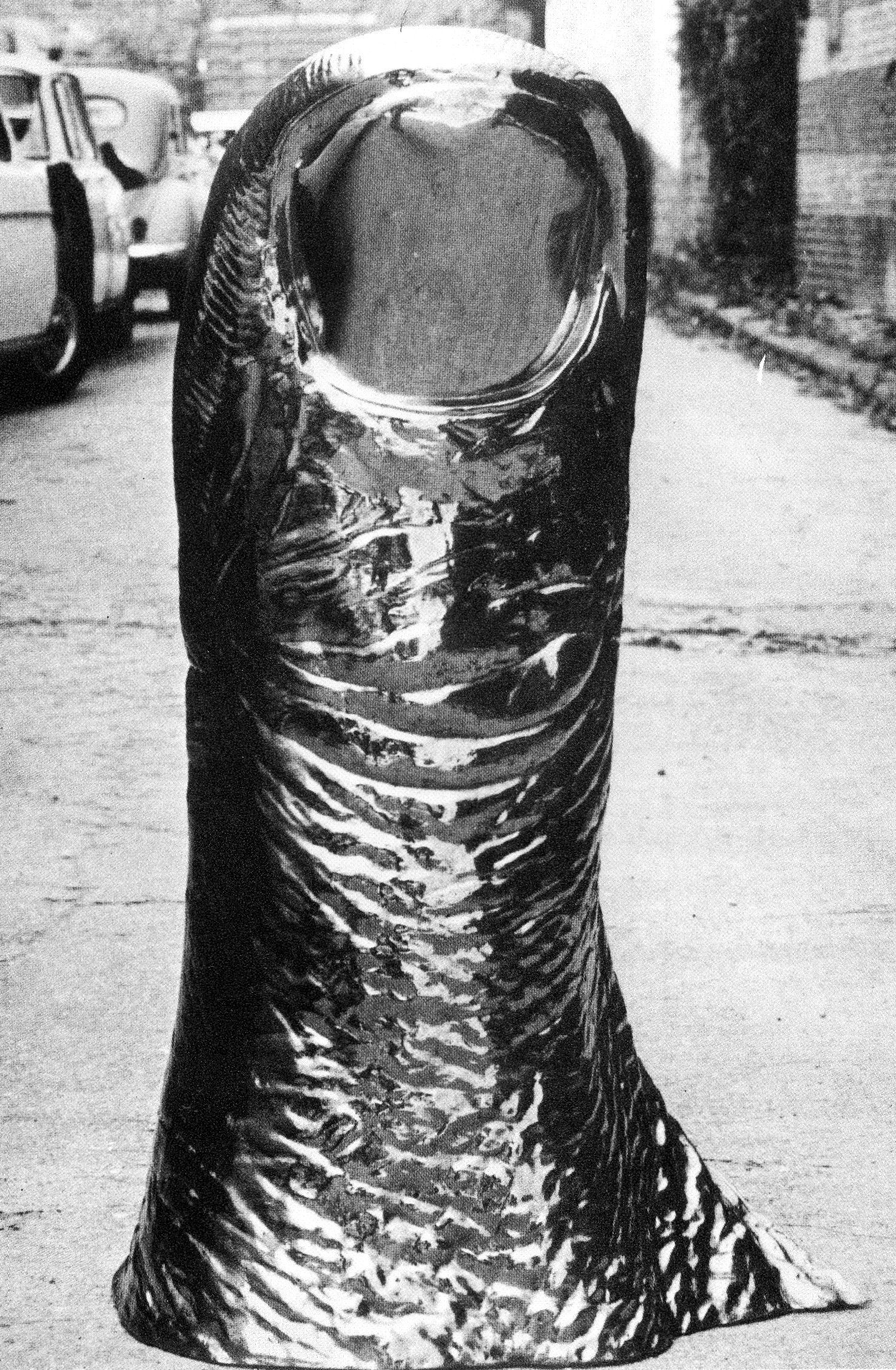 Πρώτη είναι οι «συμπιέσεις» αυτοκινήτων, οικιακών συσκευών ή ετερόκλητων αντικειμένων, που συνθλίβονται από μια βιομηχανική μηχανή. Δεύτερη επαναστατική οπτική της πραγματικότητας: οι «επεξεργασμένες μεγεθύνσεις» μελών του σώματος. Μνημειακό έργο του είναι ο αντίχειρας σε όλα τα μεγέθη που εκπονεί με διάφορα υλικά: ρητίνη, νικέλιο, γύψο, χαλκό. Διάσημο γλυπτό του είναι και ένα γιγάντιο στήθος που αναπαριστά το στήθος μιας χορεύτριας του καμπαρέ «Crazy Horse». Τρίτη καινοτομία του: οι «επεκτάσεις», με βάση ένα νέο βιομηχανικό υλικό, τον αφρό πολυουρεθάνης που διαχέεται συνθέτοντας φόρμες στο χώρο.