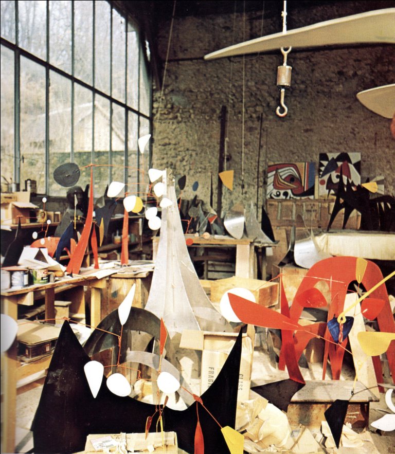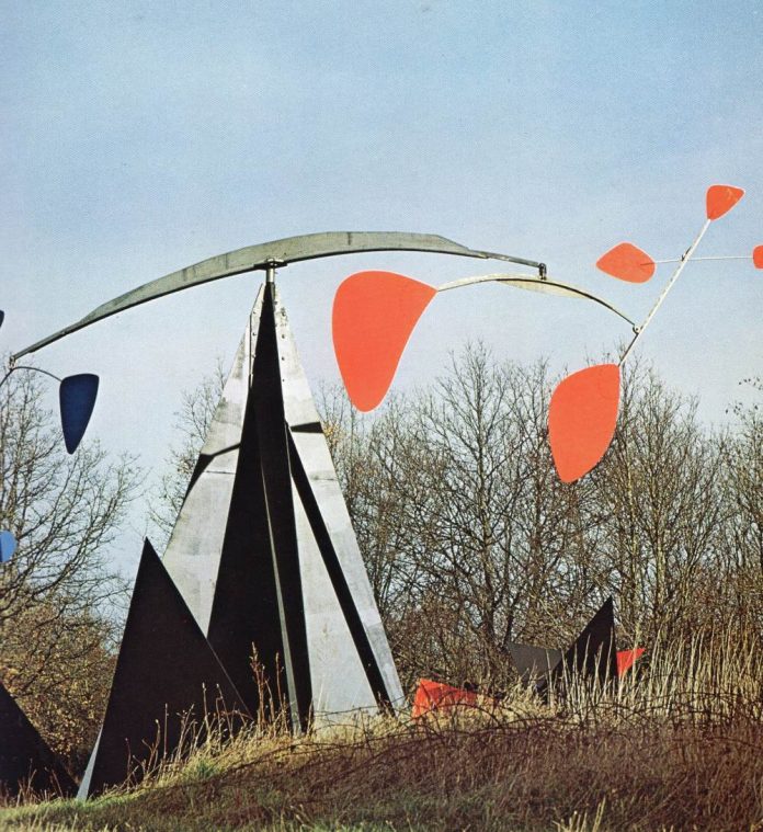 Ο Αλεξάντερ Κάλντερ, Αμερικανός γλύπτης, εικαστικός καλλιτέχνης, διάσημος για τα κινούμενα τρισδιάστατα γλυπτά του, γεννήθηκε το 1898 στο Lawnton της Πενσυλβάνια. Άρχισε να ασχολείται με την τέχνη το 1923 και δημιουργούσε συνεχώς μέχρι και την αποβίωση του το 1976. Πρωτοπόρος των κινούμενων γλυπτών (mobiles), ο Αλεξάντερ Κάλντερ ήταν αρχικά μηχανικός πριν ασχοληθεί με την γλυπτική και θεωρείται ο σύγχρονος «πατέρας» της κινητικής τέχνης, η οποία είχε ήδη προκύψει από τους πειραματισμούς της εικαστικής πρωτοπορίας, τους φουτουριστές και τους ντανταιστές. Ο Marcel Duchamp, με κινούμενες κατασκευές, ο Man Ray και ο Laslo Moholy-Nagy, με κινητικές φωτομηχανές, ο Naum Cabo με την κινητική πλαστική του ήταν οι πρόδρομοι των νέων οπτικών του μοντερνισμού. Όμως ο Calder είναι αυτός που συστηματοποίησε με τεράστια εμβέλεια την κινητική τέχνη. Από το 1950 περίπου επηρέασε παγκοσμίως σημαντικούς εικαστικούς όπως ο Jean Tinguely, με τις σουρεαλιστικές του μηχανές από μηχανικά και βιομηχανικά απορρίμματα, ο Takis, με τις ευρηματικές μαγνητικές του συνθέσεις και τα περιστρεφόμενα σινιάλα, η ομάδα Zero, με τα διάφανα μετέωρα σώματα κ.α. Ο Calder που είχε σπουδάσει στο Stevens Institute of Technology, στο Art Students League της Νέας Υόρκης και είχε παρακολουθήσει μαθήματα στην Academie de la Grande Chaumiere στο Παρίσι χρησιμοποίησε στις συνθέσεις του φύλλα μετάλλου, κομμένα σε απλά σχήματα, ένα σύστημα αλυσιδωτών τροχών, που είχαν την δυνατότητα να κινούνται ή να περιστρέφονται ακόμα και με το απαλό φύσημα του αέρα. Έγινε πολύ γνωστός για αυτά τα «κινούμενα» γλυπτά, με τα οποία άρχισε να ασχολείται εντατικά μετά το 1930, όταν αποφάσισε να χρησιμοποιήσει το στοιχείο της κίνησης στις ιδιότυπες συρμάτινες δημιουργίες του.