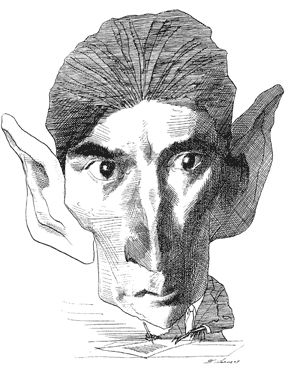 Ο Φραντς Κάφκα […] τώρα μες τον τάφο του/δε λέει ακόμα να ησυχάσει./Κάθε βράδυ βγαίνει/και δε γνωρίζει πια αυτή την Πράγα./ Ρωτάει για κάποιον Κάφκα δεν τον γνωρίζουμε, λένε/ για κάποιον Κάφκα-πουλί που έζησε εδώ/και πολλά χρόνια σ’ αυτή την πόλη, ρωτάει./ Όχι του λένε ο Choucas το πουλί/ έχει χρόνια πολλά να φανεί σ’ αυτή/ την πόλη και άι στο διάβολο του λένε». [Kavka: Choucas, πουλί από το οποίο πήραν το όνομα οι Κάφκα].
