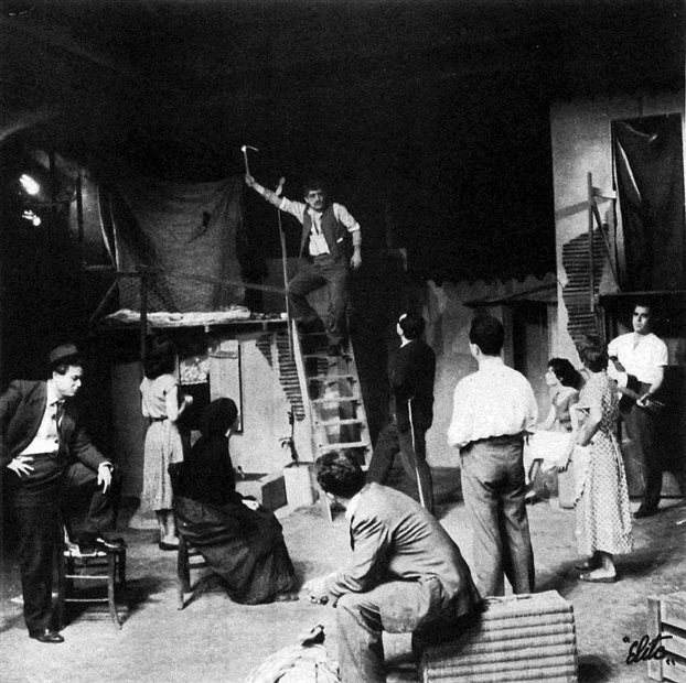 Υπάρχει κι ένας ακόμη λόγος της μη κανονικής ζωής αλλά και της πορείας που ακολούθησε. Χωρίς να έχει στην τσέπη του καν απολυτήριο ή σχετικής με το θέατρο σχολής, στην ουσία ανεκπαίδευτος καλλιτεχνικά, πέρα από το τεχνικό σχέδιο, θαμπώθηκε στην κυριολεξία από τις παραστάσεις του Θεάτρου Τέχνης του Καρόλου Κουν, τον χειμώνα του 1945-46. Πρέπει να είδε το Βυσσινόκηπο του Τσέχωφ, κάποια μονόπρακτά του, τα Παντρολογήματα του Γκόγκολ, τις Χοηφόρες, το Γυάλινο κόσμο του Τ. Ουίλιαμς, Ξενόπουλο, Ανούιγ, Ο’Νηλ κι ίσως τον Ματωμένο γάμο του Λόρκα. Όλα σε σκηνοθεσία Κάρολου Κουν. Και διάλεξε το δρόμο του. Το θέατρο και ό,τι άλλο γύρω από αυτό. Σινεμά, ραδιόφωνο, σενάριο.
