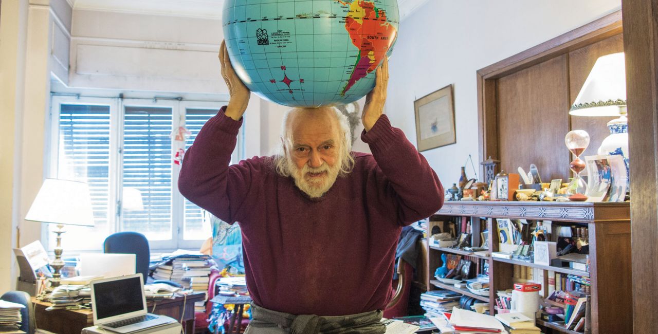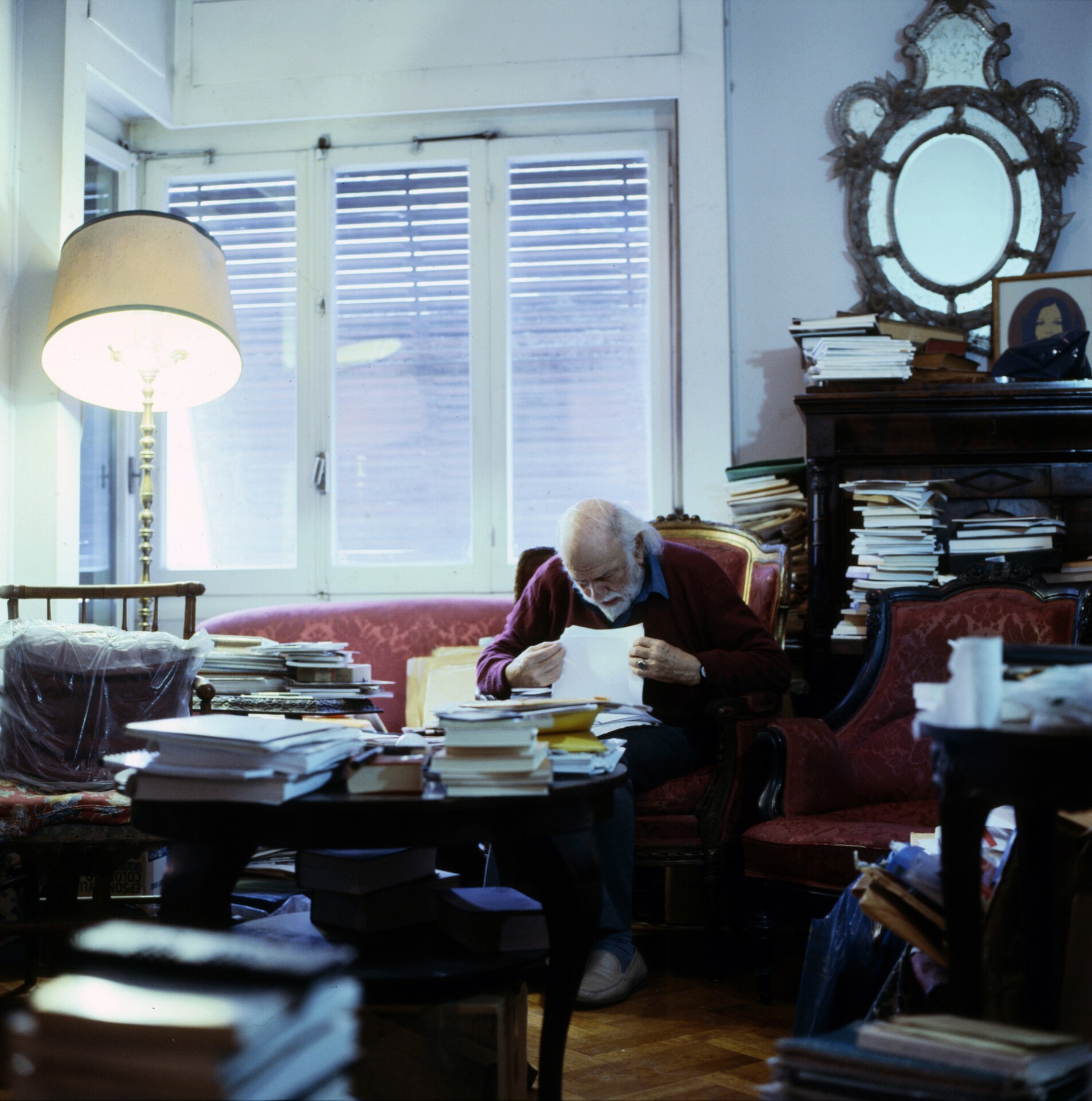 Έτσι καθώς με κοιτά λοξά απ την εικόνα του περιοδικού αυτός δε βλέπει παρά το τυφλό ποτάμι που μέσα του κολυμπούσε όσο ζούσε. Ενώ εγώ βλέπω ένα ωραίο πρόσωπο με τα χαρακτηριστικά του: σχεδόν άδειο κρανίο μπροστά μακριά λευκά μαλλιά που καβαλάνε τον γιακά του πουκαμίσου του πίσω, ρυτίδες που αυλακώνουν το μέτωπο ως τα φρύδια, μεγάλα μάτια που αντιστέκονται στα αδιάκριτα βλέμματα, τα λευκά γένια που σκεπάζουν το υπόλοιπο πρόσωπο. Τους νευρώνες του εγκεφάλου δεν τους βλέπω, ούτε τις σκέψεις του ξεκρίνω. Μπορώ όμως να διαβάσω κάποιες γραμμένες στο χαρτί: